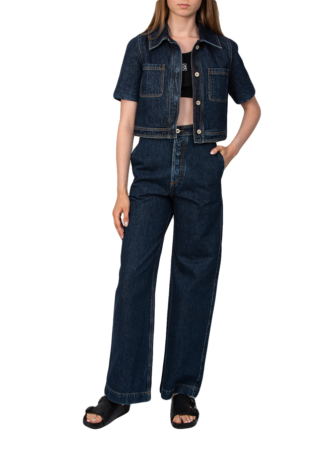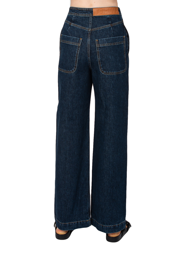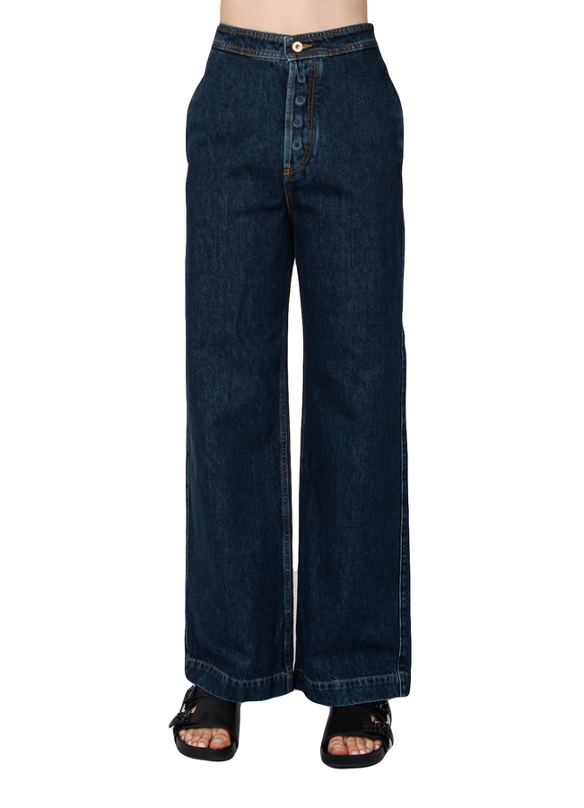 - Straight-leg, high-rise jeans with contrast seams, a button fastening, two diagonal side pockets, large patch pockets at the back and a leather logo patch.
