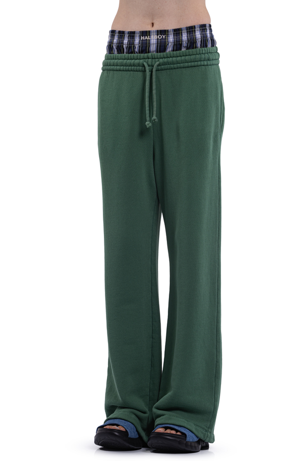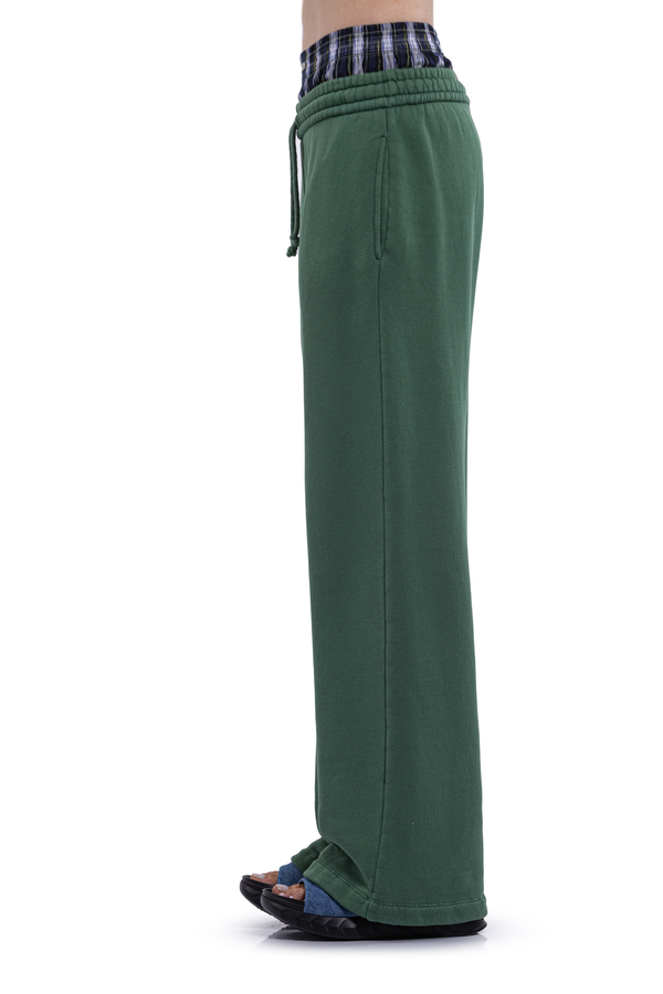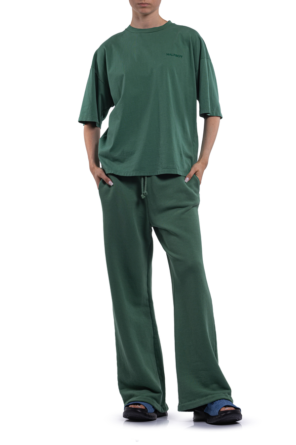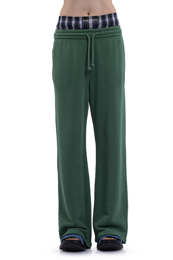 - Sports pants with elastic waistband and drawstring, two slit pockets on the sides