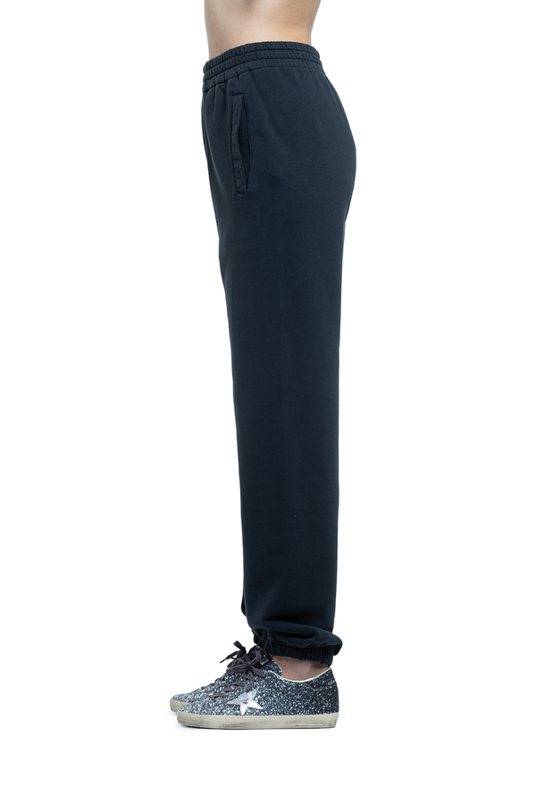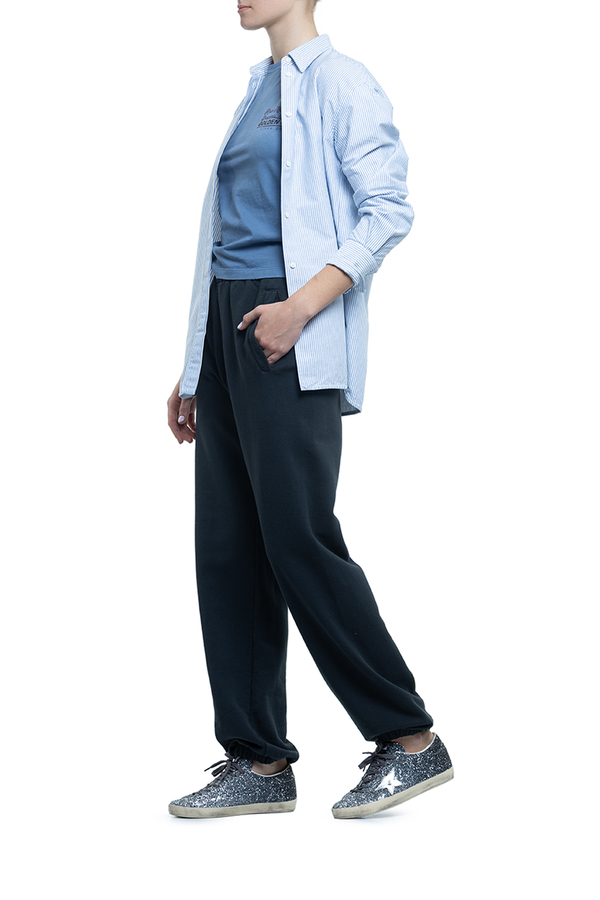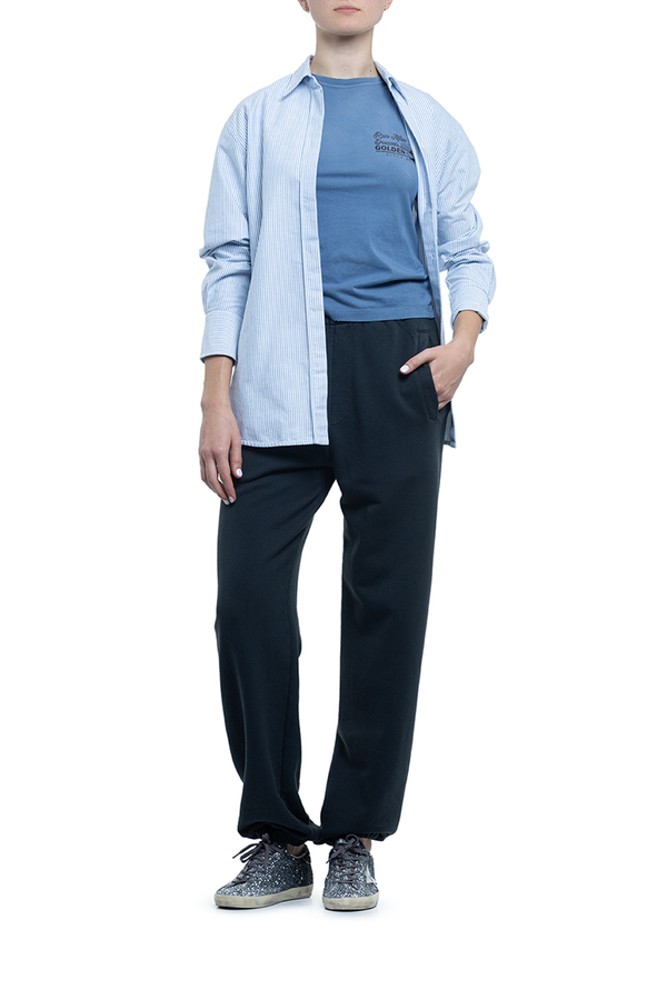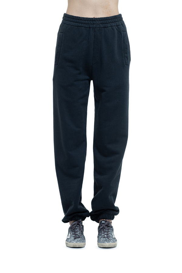 - Trousers with an elastic waistband and cuffs, two slit pockets on the sides, one patch pocket and the signature double star logo at the back