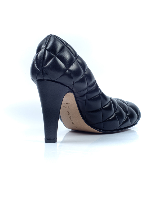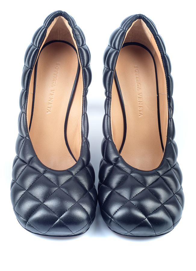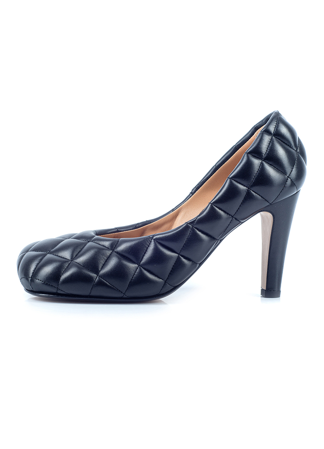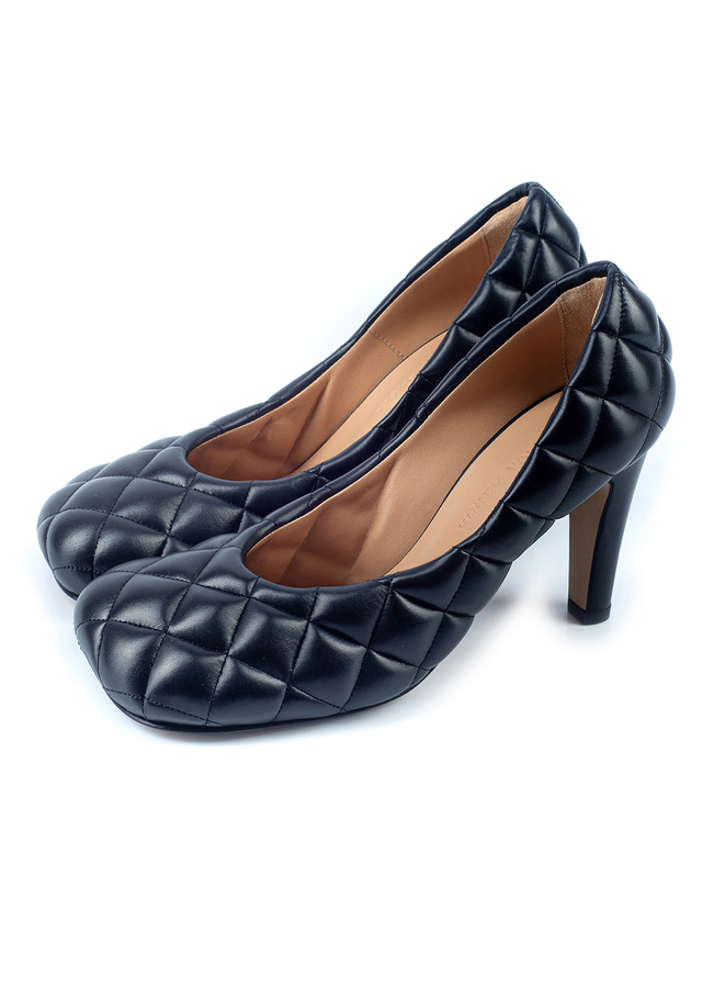- The shoes are made of quilted leather. With leather insole, straight stable heel, square sock and quilted effect.