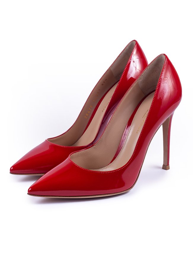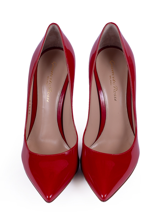 - Gianvito patent leather shoes with a narrowed toe made of soft leather. High heel.