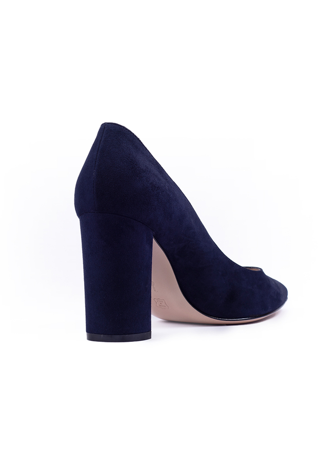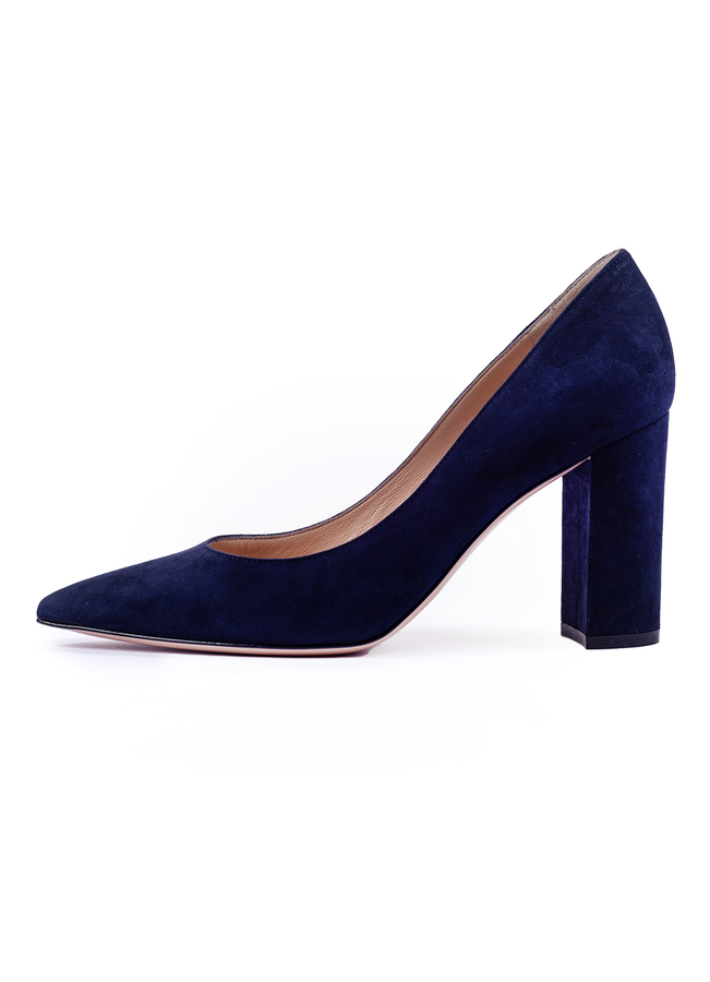 • Piper suede shoes with a stable heel, with a narrowed toe.