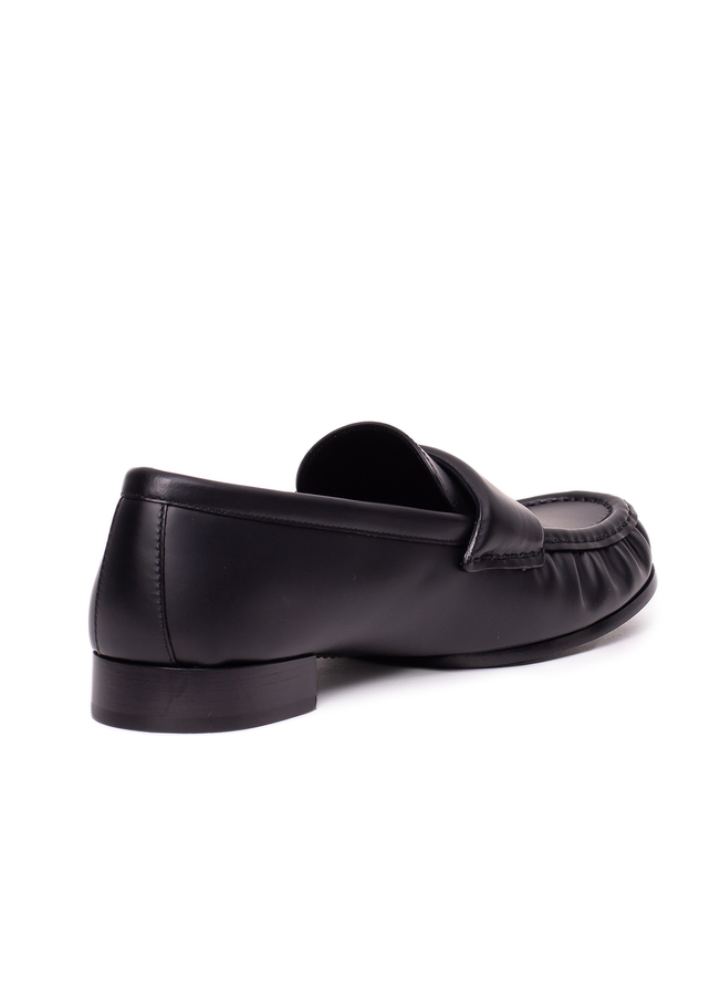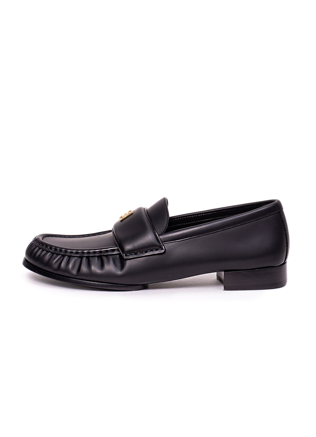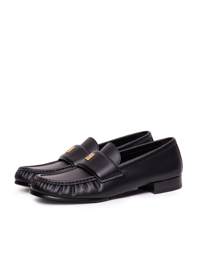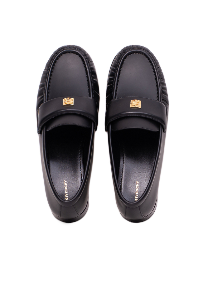 - Leather loafers. Wide heel. Front strap with golden metal element. GIVENCHY lettering embossed on the leather insole.