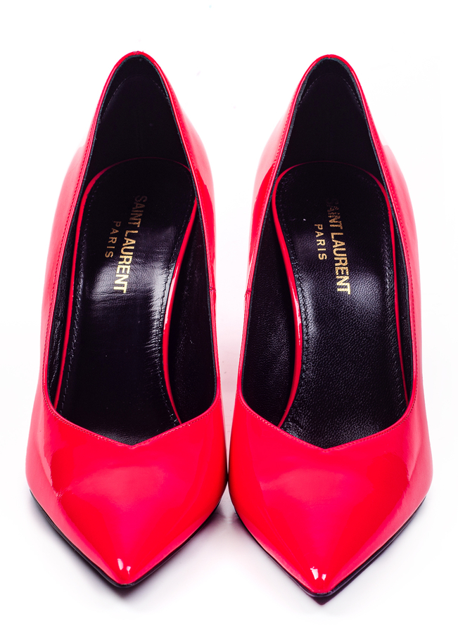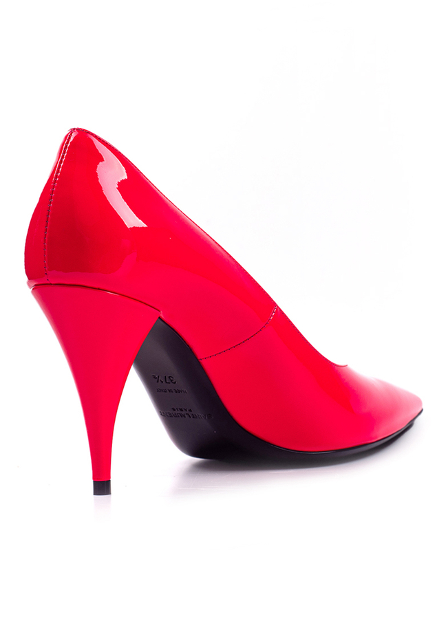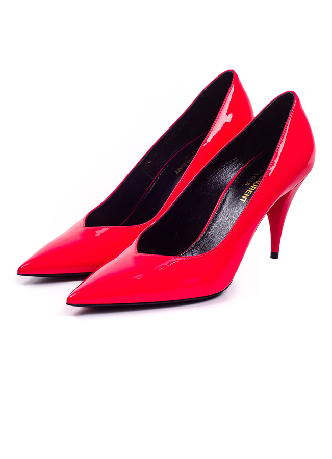 - Leather Kiki shoes in soft, glossy patent leather. Deep notched neckline, tapered toe, leather sole.
