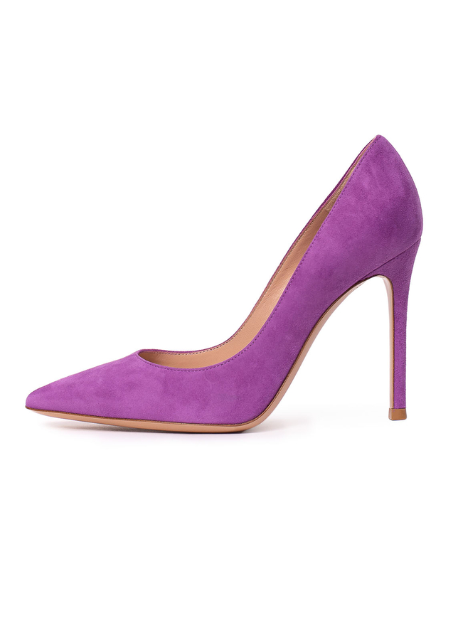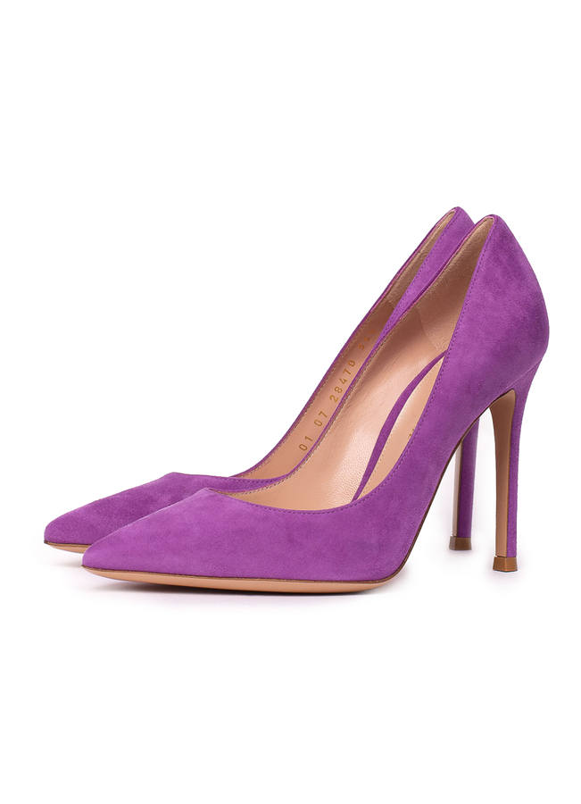 - Suede high-heeled shoes with a pointed toe, leather insole.