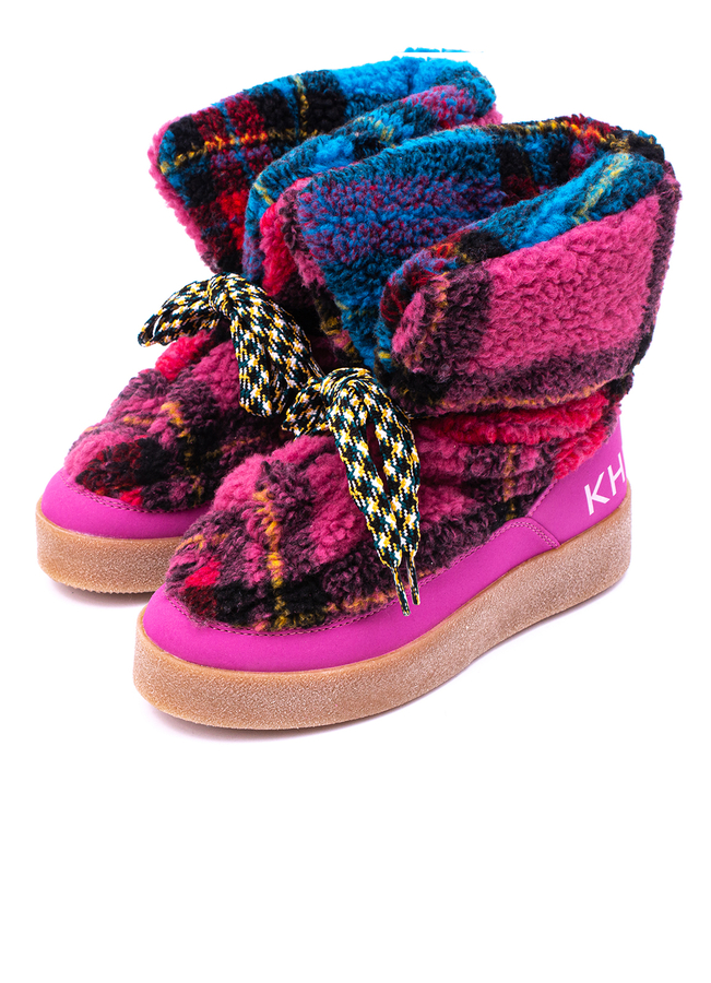 - Soft puffy shoes with a checkered print. Flat rubber sole, clasp with laces.