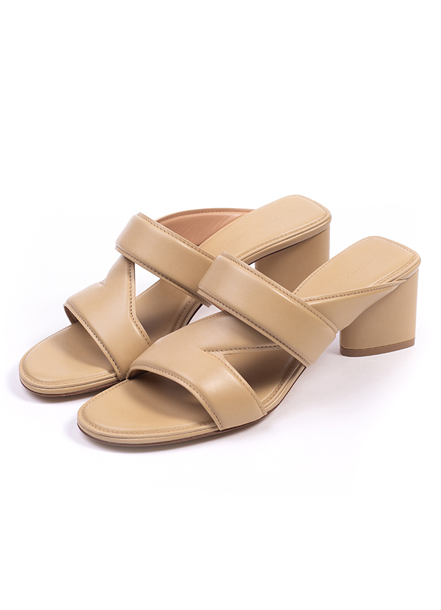 - Leather mules with webs, open sock, without clasp, block heel.