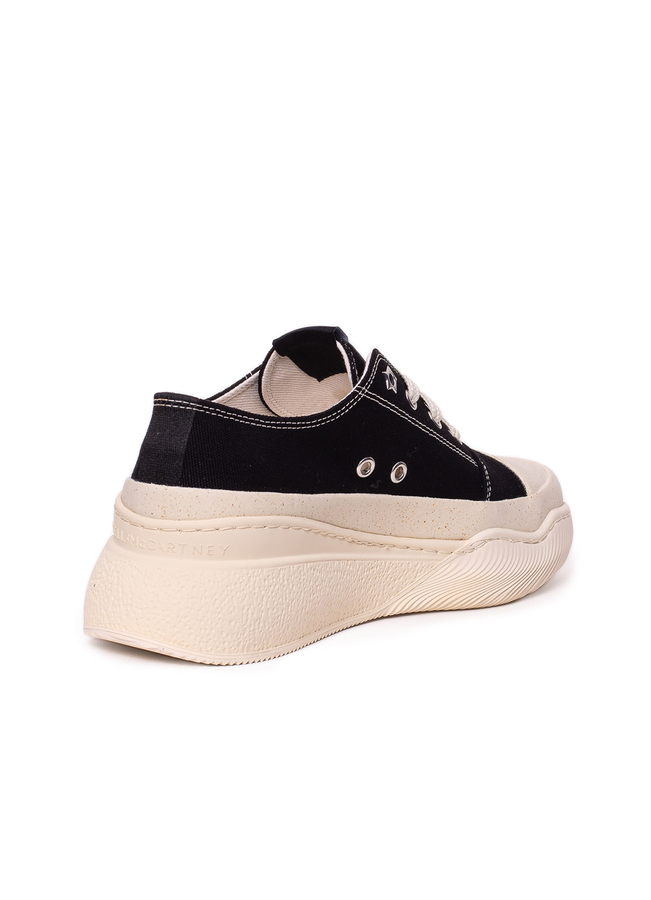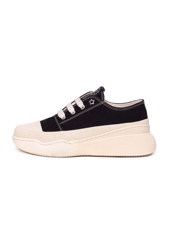 - Cotton sneakers with rubber soles, lace-up front.