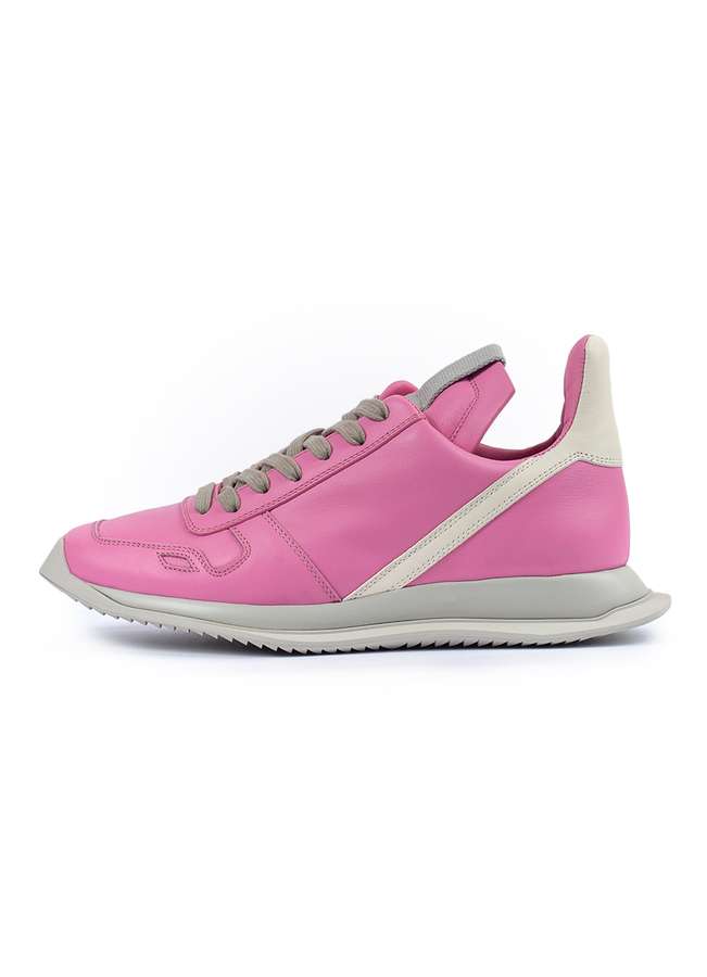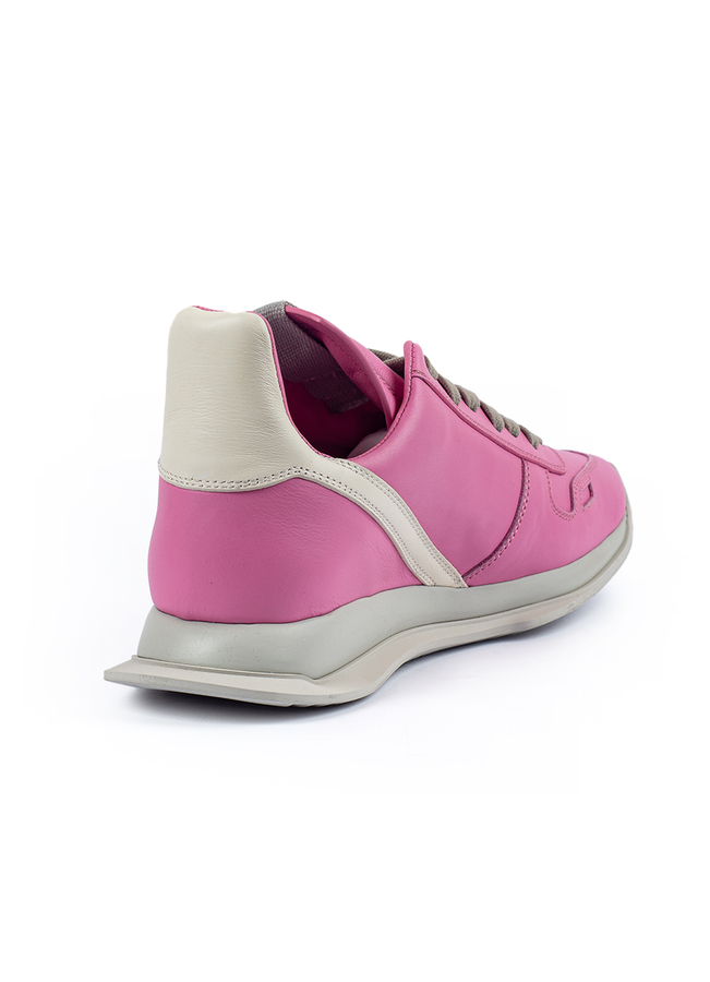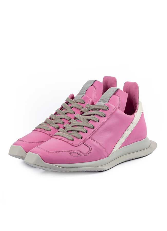 - Leather sneakers with laces, high soft back, ribbed rubber sole. Decorated with a strip of leather of a contrasting shade on the sides.