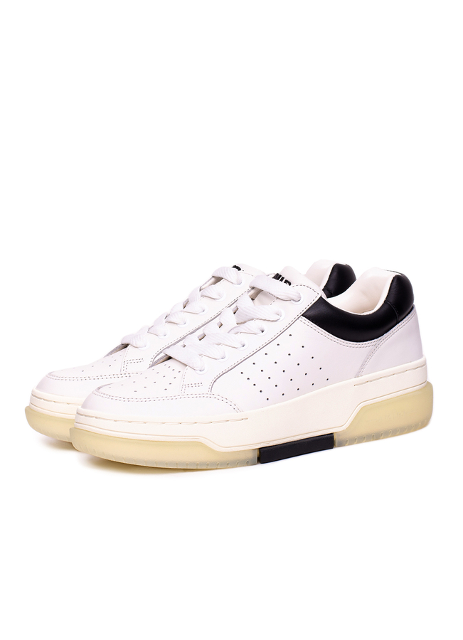 - Leather round-toe lace-up sneakers with perforations on the front and sides, signature leather insole, multicolor rubber sole and logo-embossed tongue.
