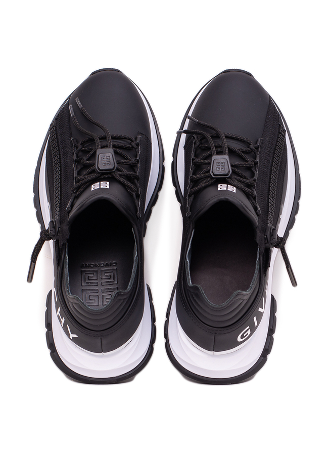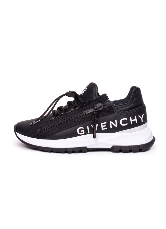 - Combined sneakers made of leather and textile with a zipper on the side. Laces on the front, branded logo on the tongue. GIVENCHY inscription on the side. Light rubber sole, leather insole.