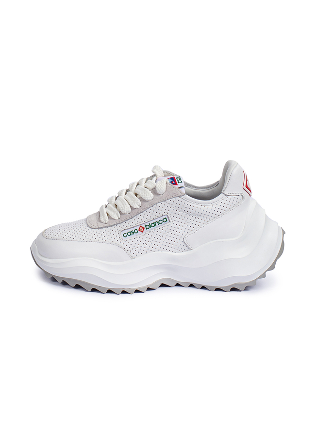 - Lace-up sneakers with perforations at the front, rubber sole, brand logo on the tongue and sides, logo insert at the back