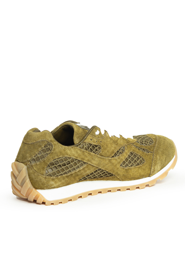 - Mesh and suede sneakers with a lace-up front and rubber sole