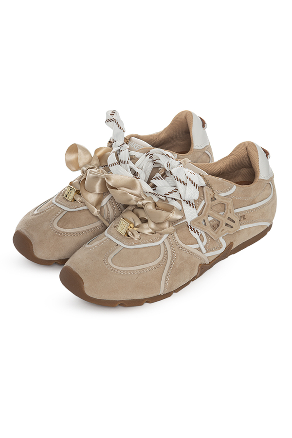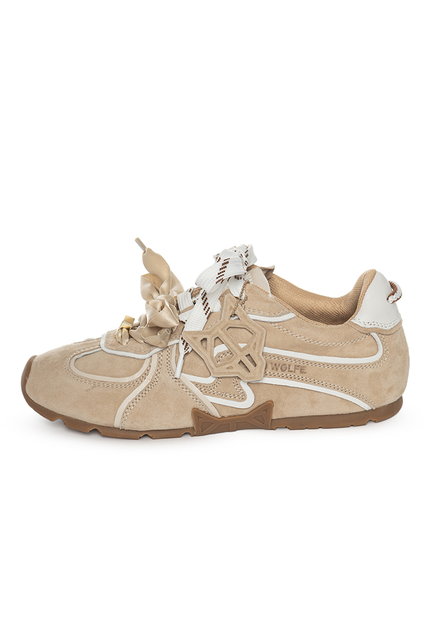 - These sneakers feature a round toe, a soft leather footbed with an embossed logo, a leather logo patch on the tongue, a signature detachable wolf head keychain on the side, a double lacing system, and a rubber sole.