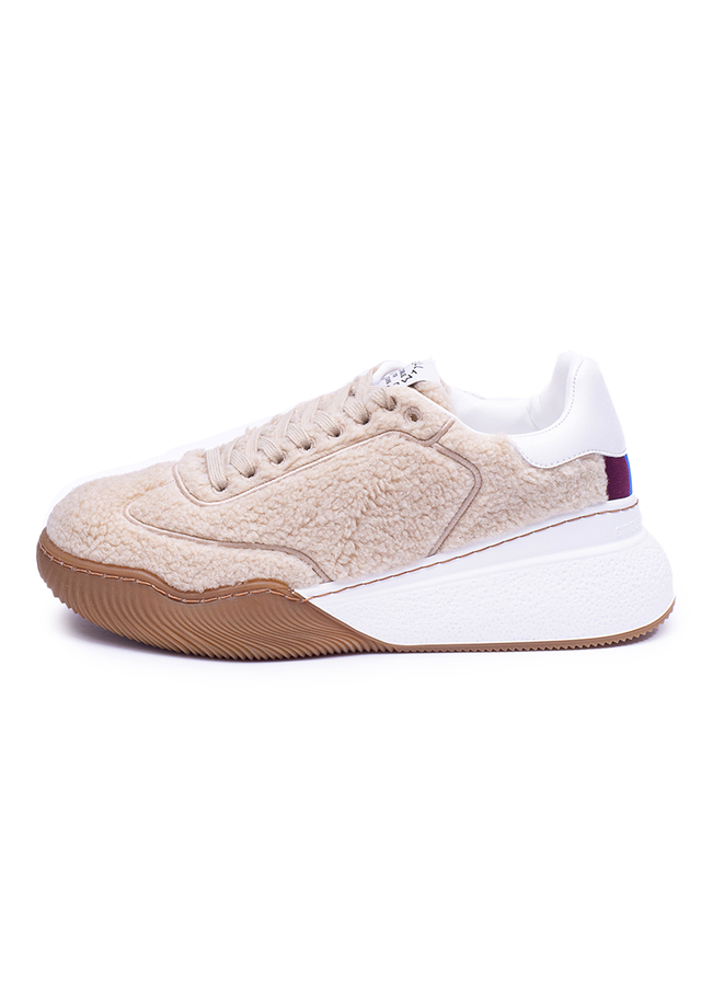 - Loop lace-up sneakers in faux fur with rear striped fabric insert and smooth leather heel tab with debossed logo. Fabric logo tag on the tongue; fabric and faux leather lining; removable insole and rubber-coated base with contrasting stitching and rear embossed logo. Bicolor rubber sole. Extra laces included.