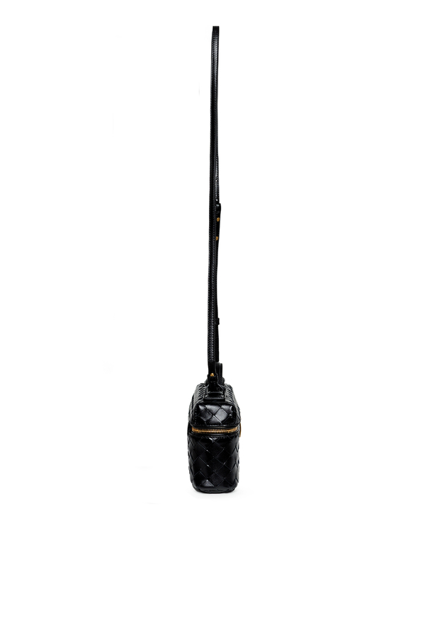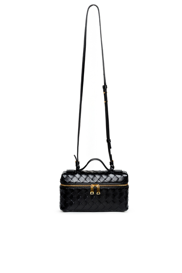 - Bang Bang leather bag with Intrecciato weave, short and long handles, single compartment, pocket, double slider zipper