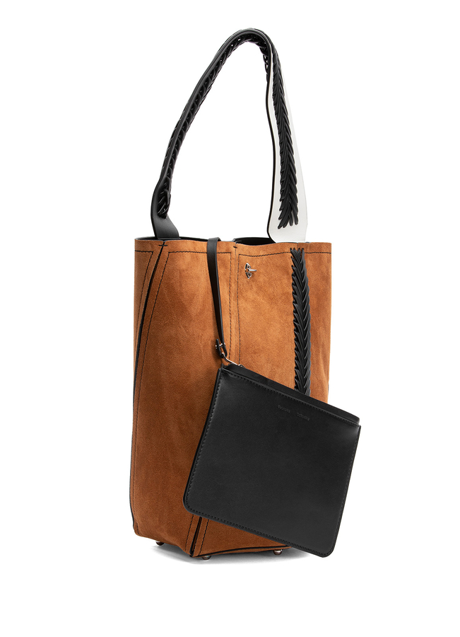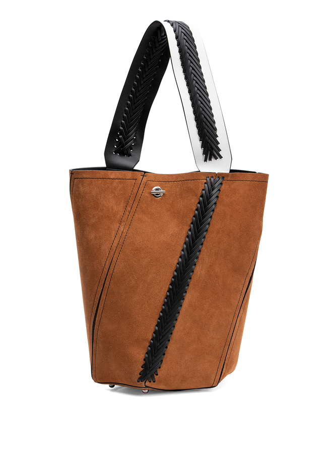 - Suede Bucket bag with leather braided handle.