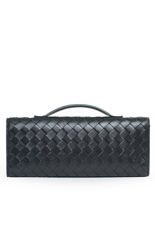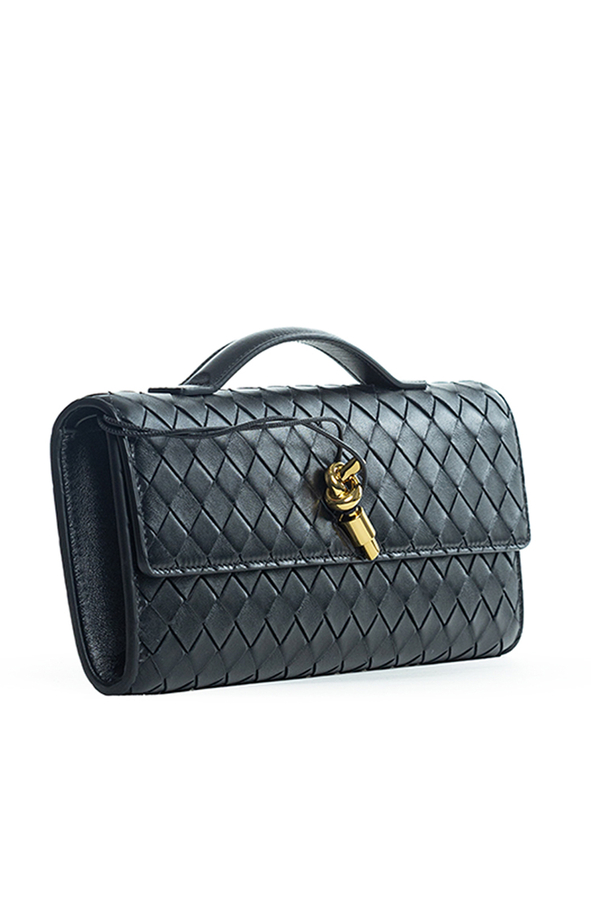 - Andiamo clutch bag in size Small, Intrecciato weave, one compartment, short handle, metal knot detail