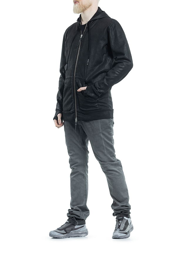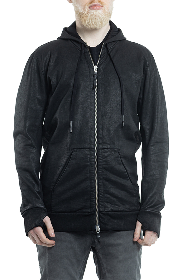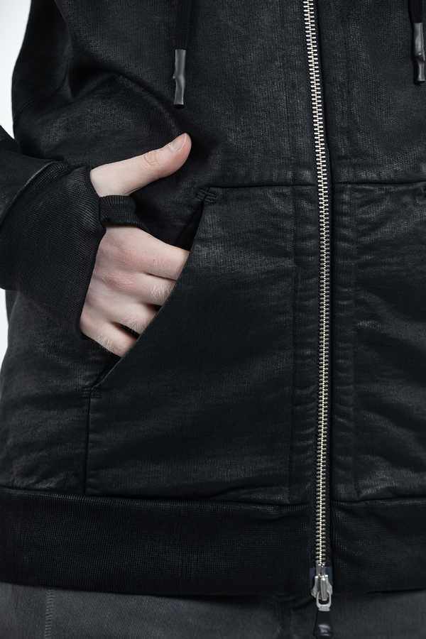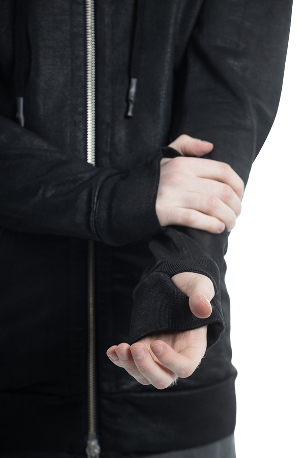 - Худые с капюшоном на шнурке, застежка на двойную молнию, манжеты с прорезями для пальцев, два кармана спереди