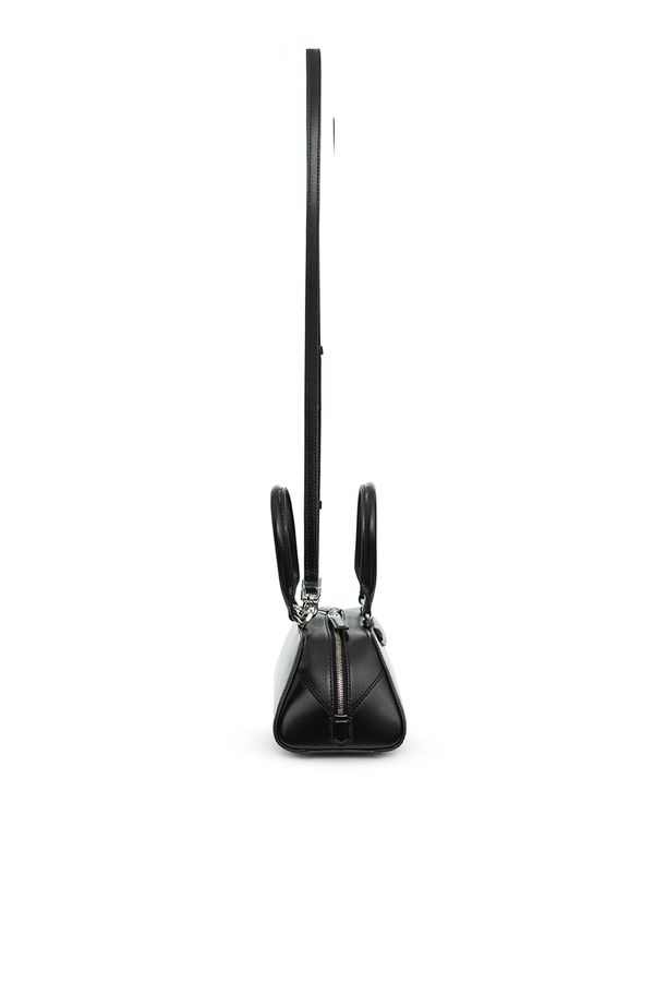 - Кожаная мини-сумка Antigona East-West, сверху застежка на молнию, регулируемый и съемный кожаный плечевой ремень, пятиугольная нашивка с тиснением GIVENCHY спереди, серебристые металлические детали, одно основное отделение