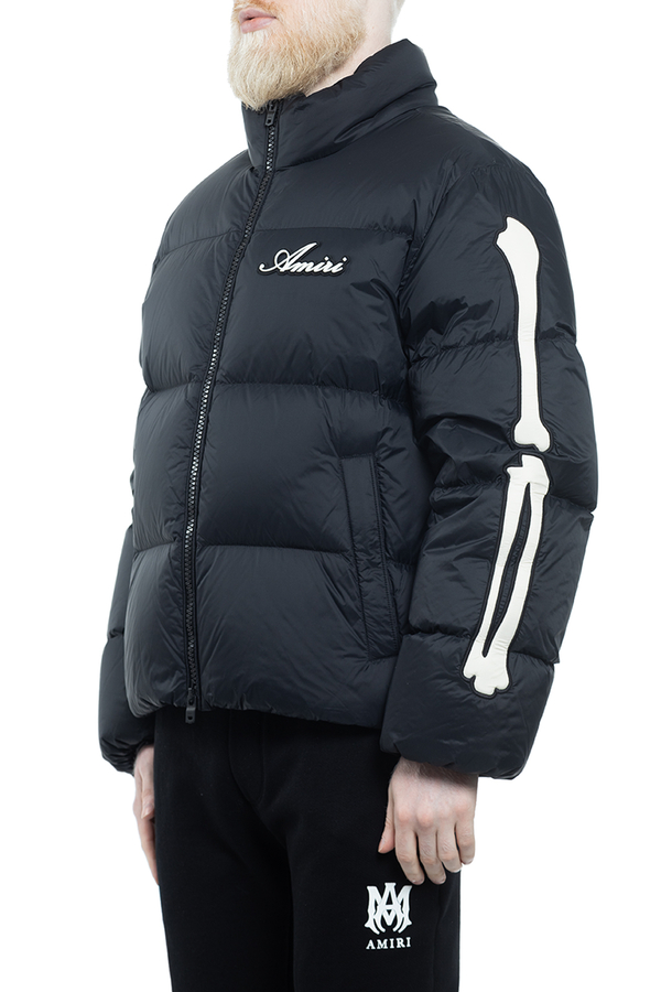 - Пуховик с высоким воротником, застежка-молния спереди, два боковых кармана, фирменная аппликация на рукавах, логотип на груди