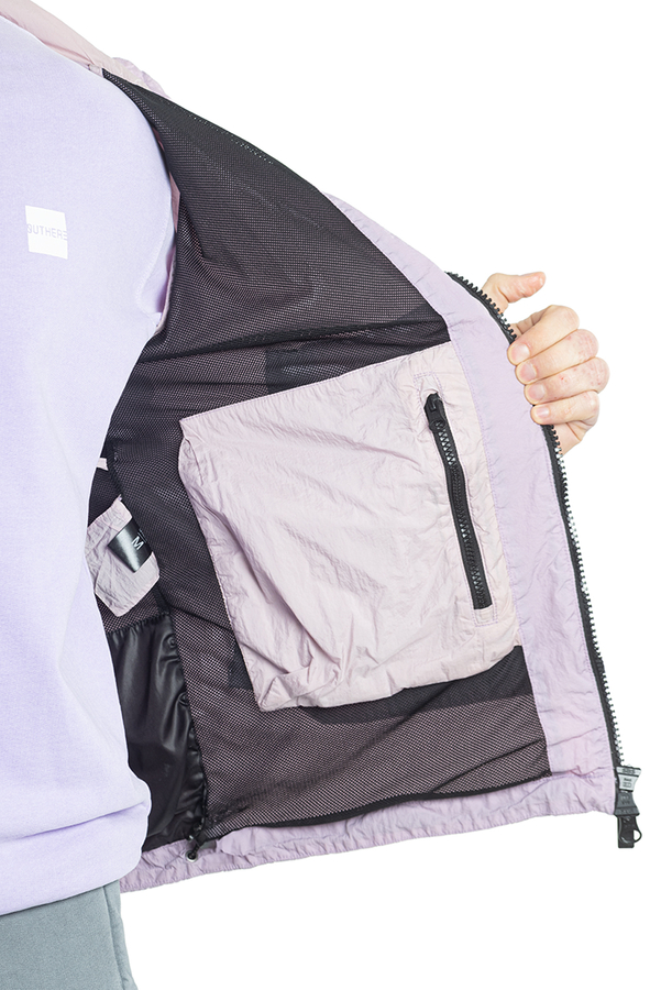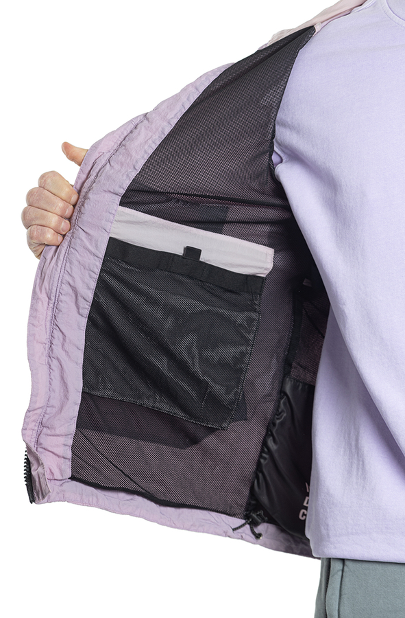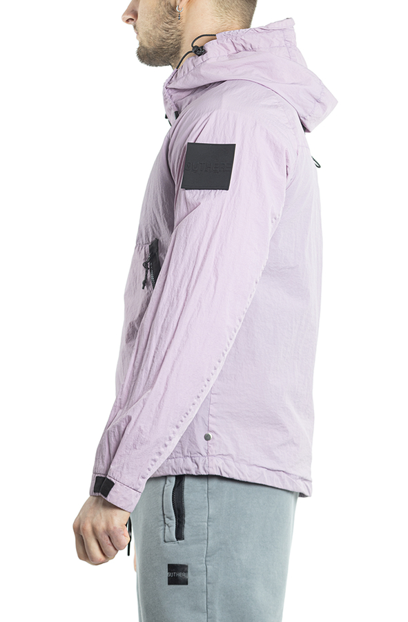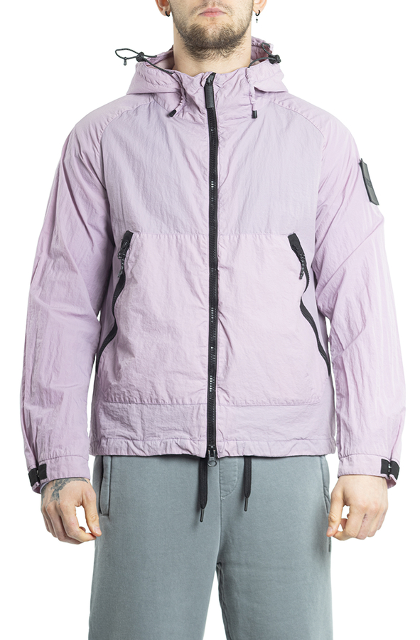 - Ветровка с капюшоном на кулисе, регулируемые манжеты, спереди застежка-молния, два прорезных кармана на молнии, на рукаве нашивка с логотипом