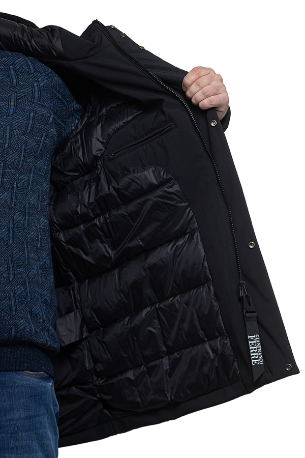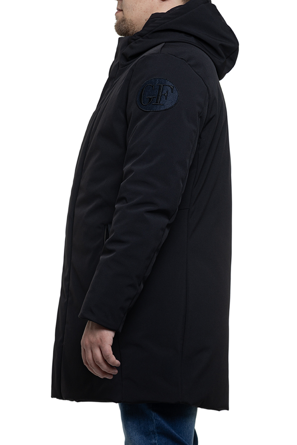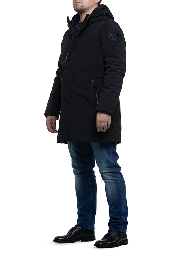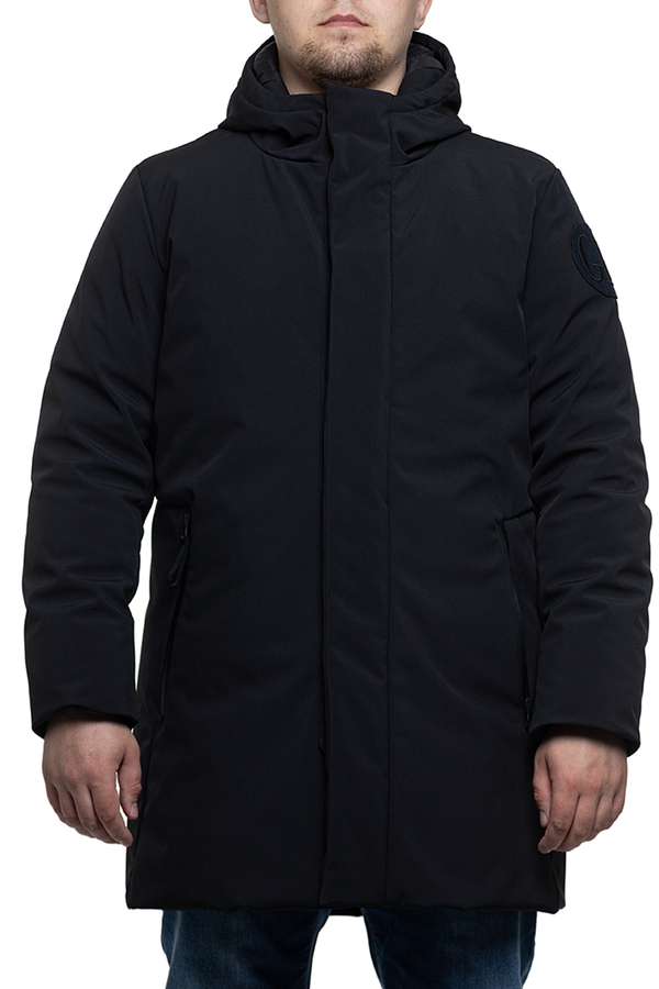 - Парка с пуховым наполнителем, с капюшоном, средней длины. Карманы на молниях.