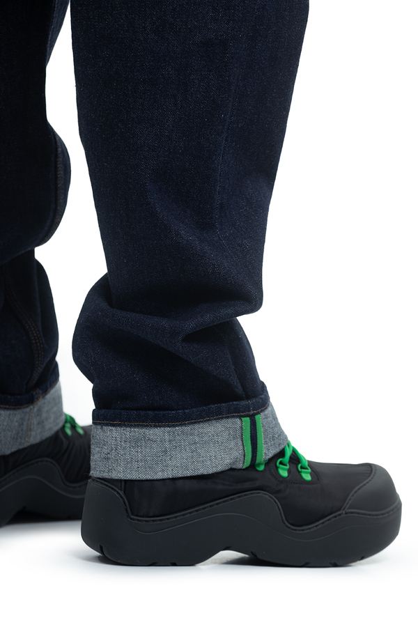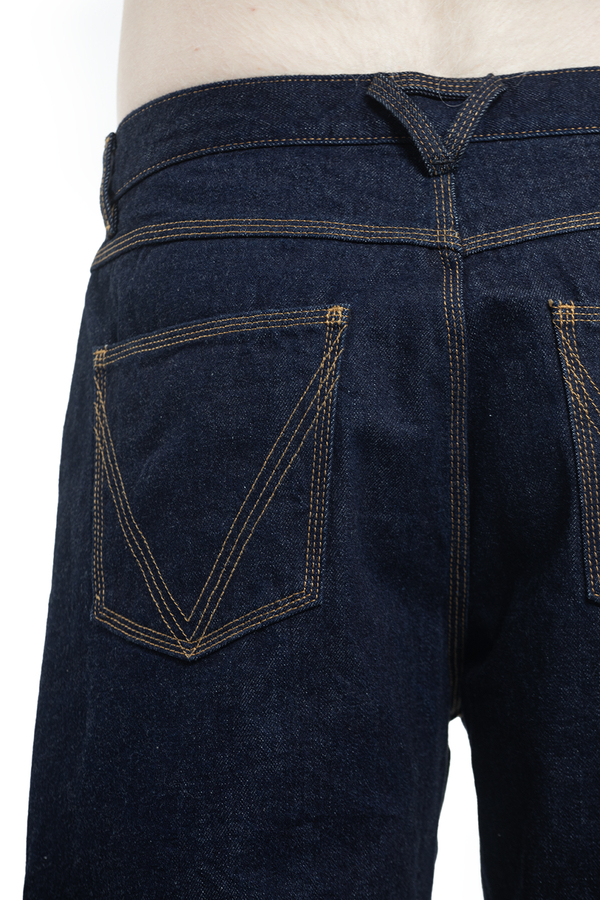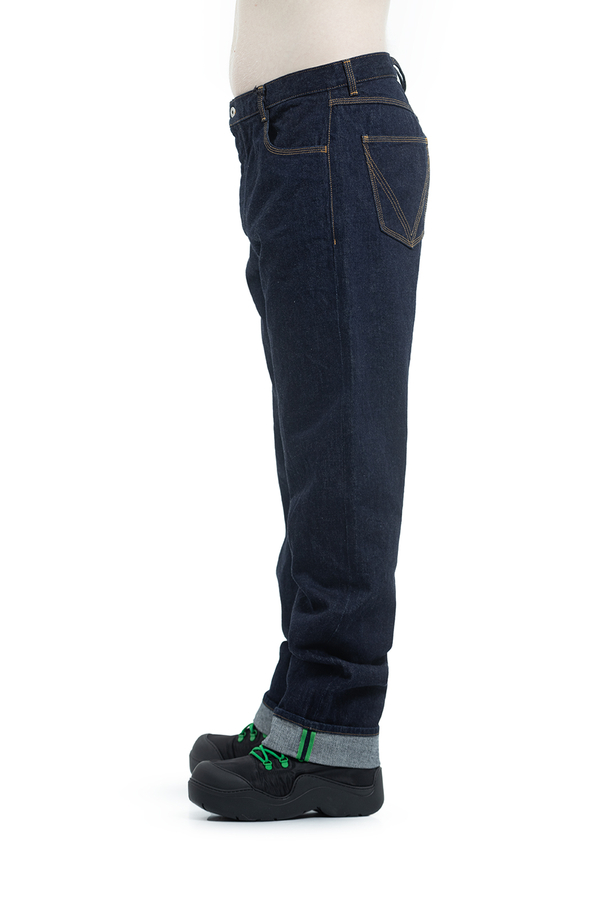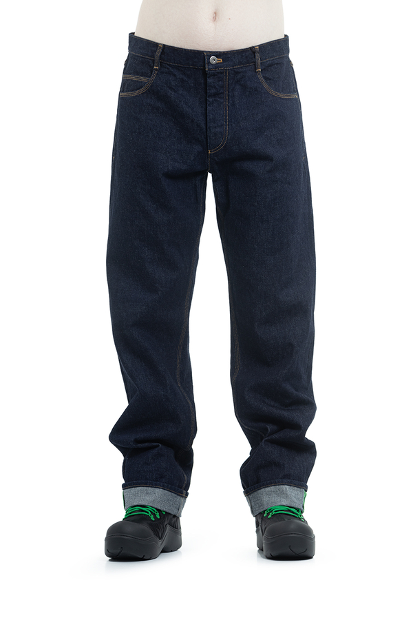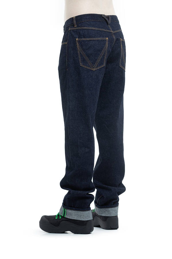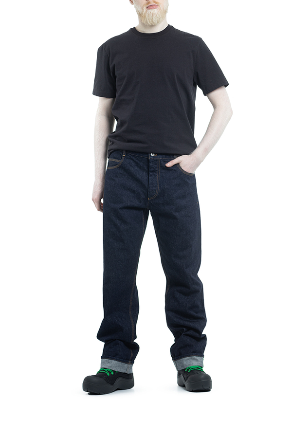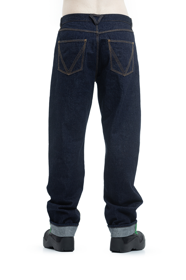 - Джинси прямого выльного крою з петлями для ременів. Застібка на гудзики, п'ять кишень. Задні кишені з фірмовою V-строчкою.