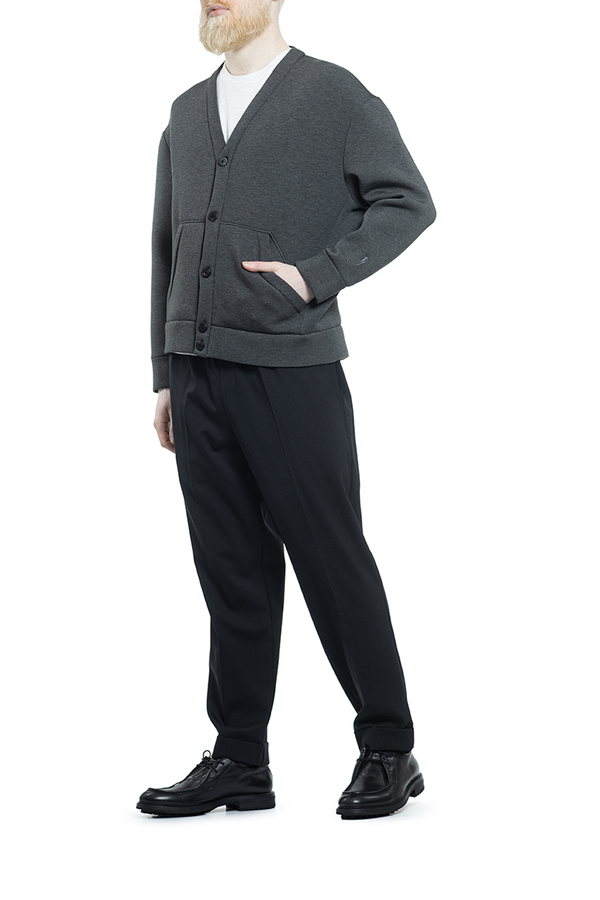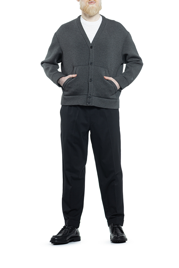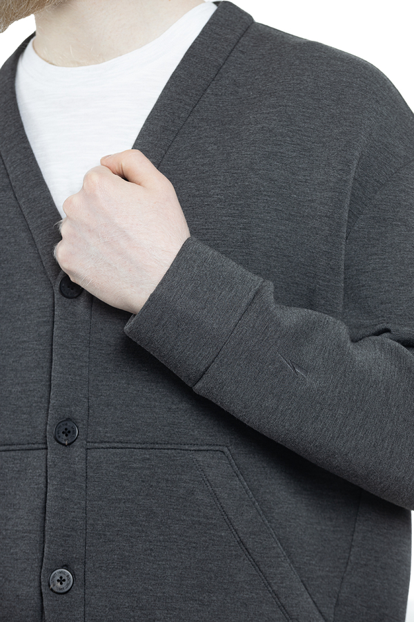 - Кардіган із застібками на гудзики, V- виріз, рукава з манжетами, спереду дві прорізні кишені