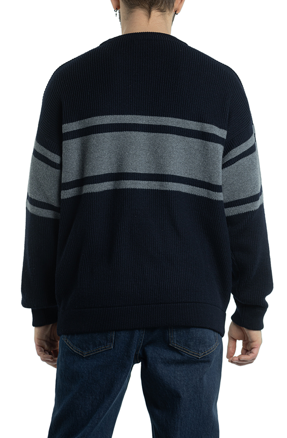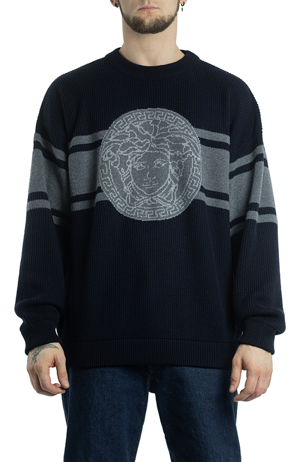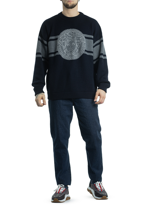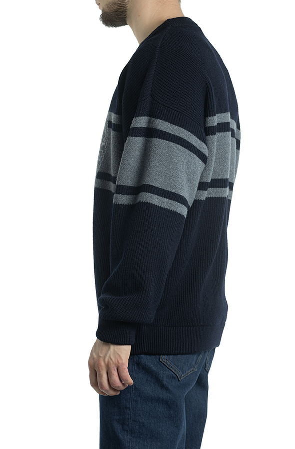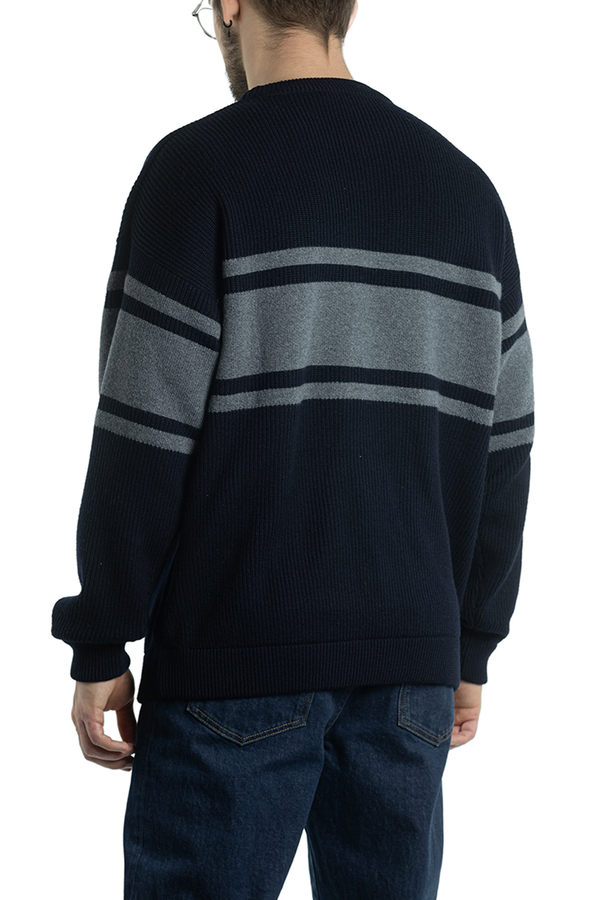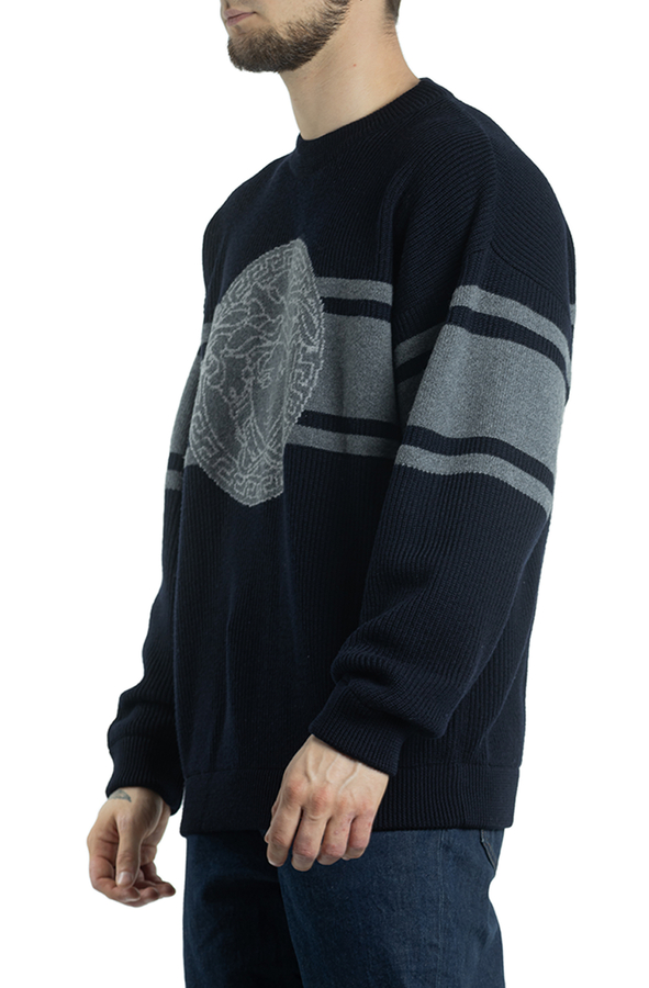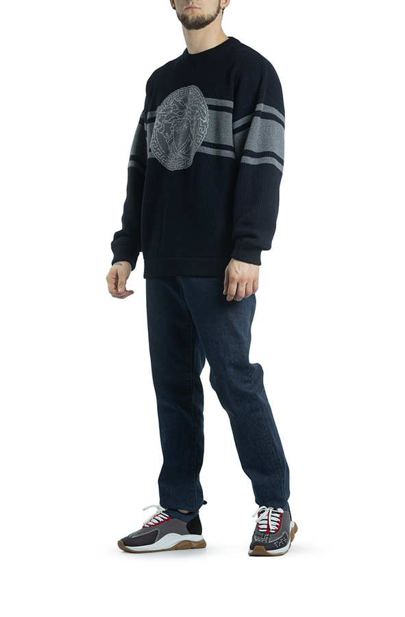 - Жакардовий джемпер з горизонтальними смугами і логотипом.