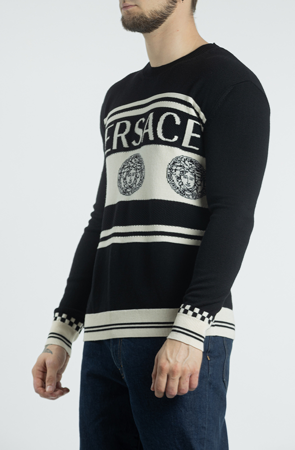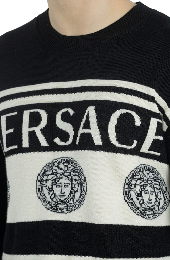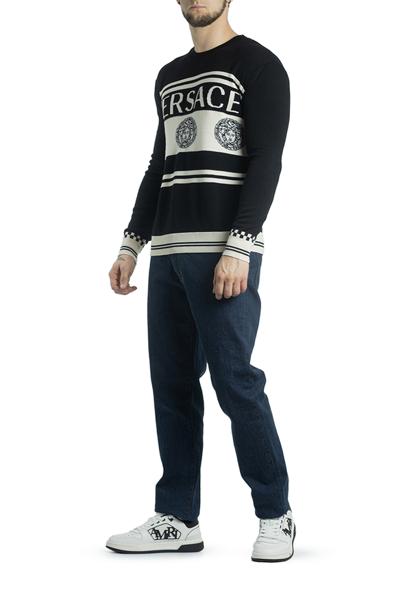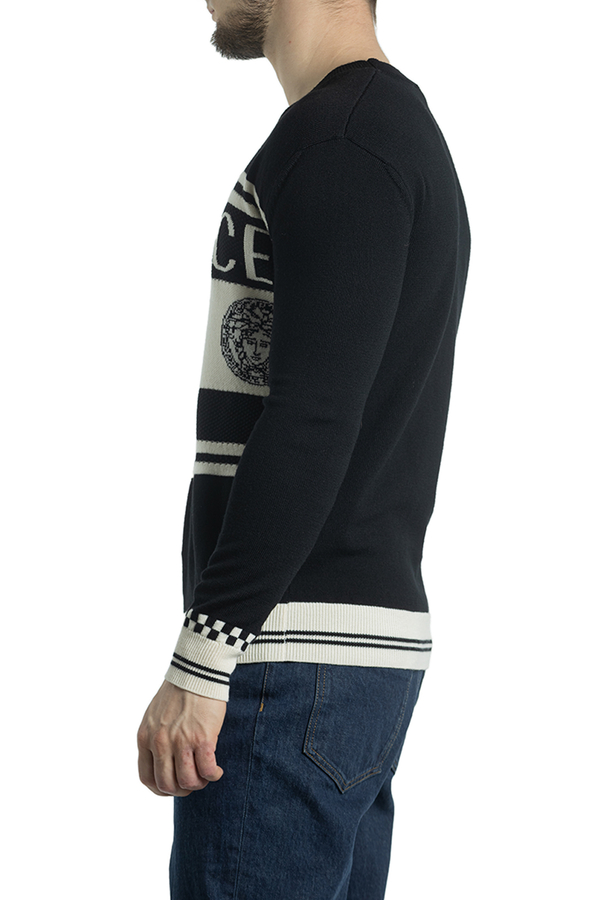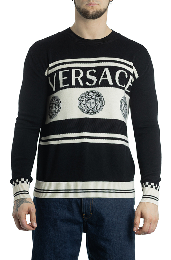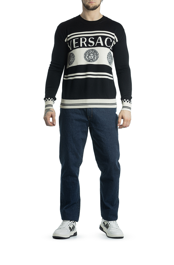 - Вовняний светр з логотипом Medusa Intarsia і білими смугами.