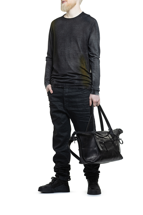 - Свитер с длинными рукавами, двухцветный дизайн, эффект потертости, круглый вырез горловины.