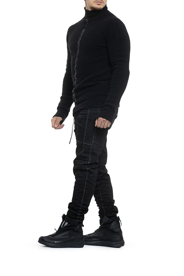 - Свитер с длинными рукавами без видимых швов, высокий воротник, контрастная трикотажная полоска спереди