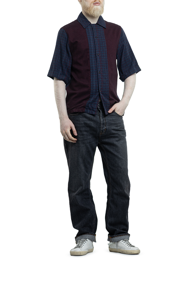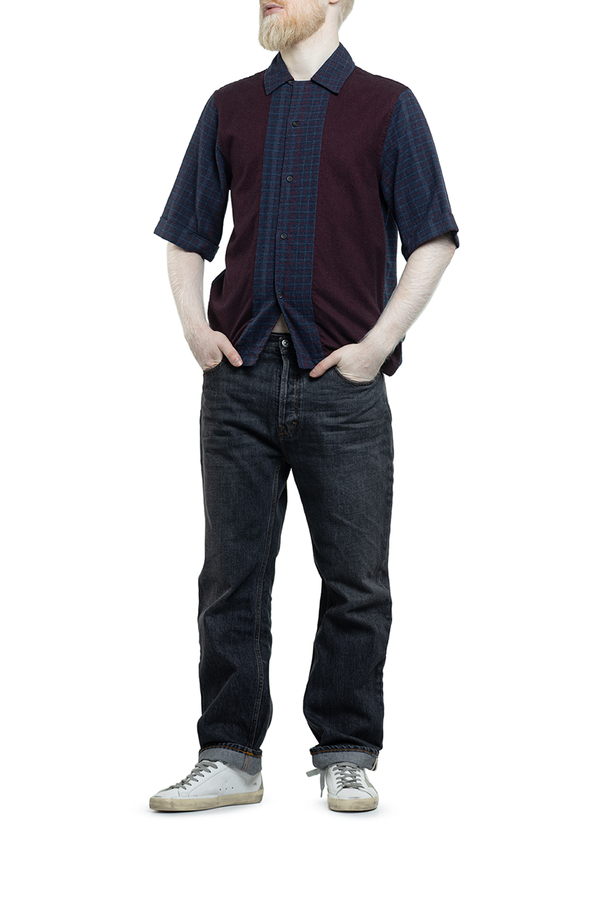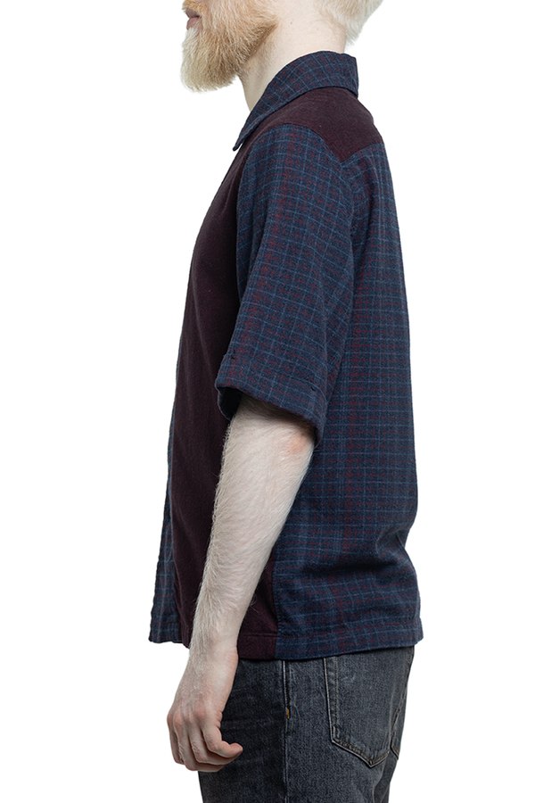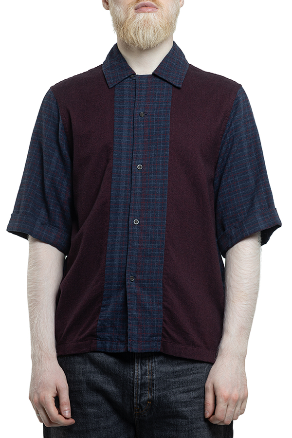 - Картата сорочка з короткими рукавами. З бордовими вставками.