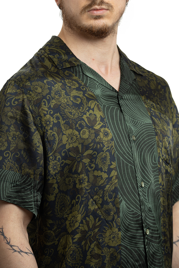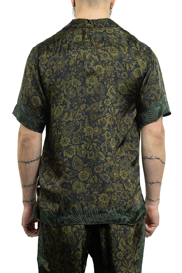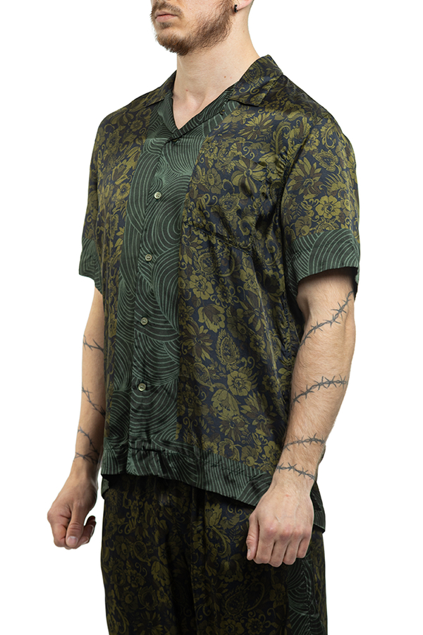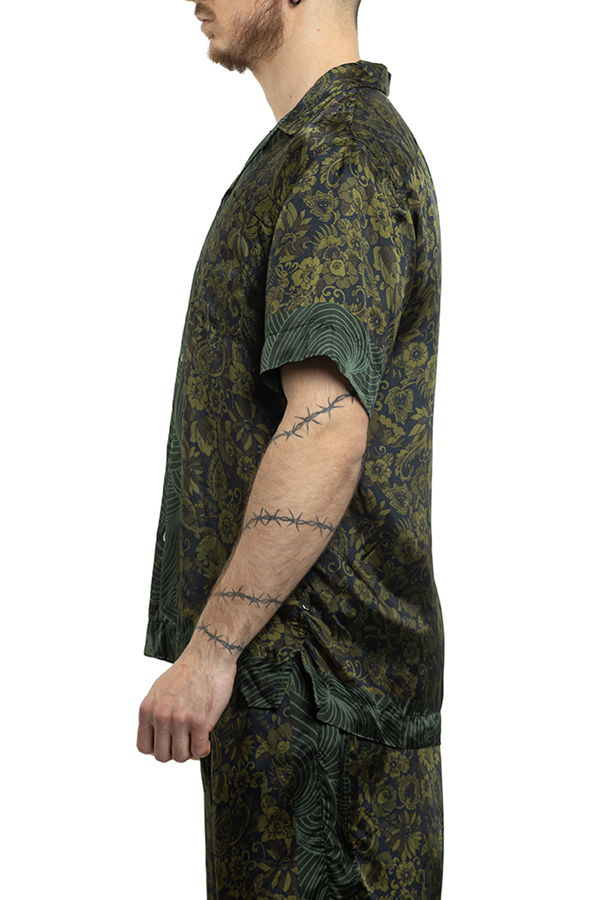 - Сорочка з короткими рукавами з шовковистої тканини з рослинним принтом.