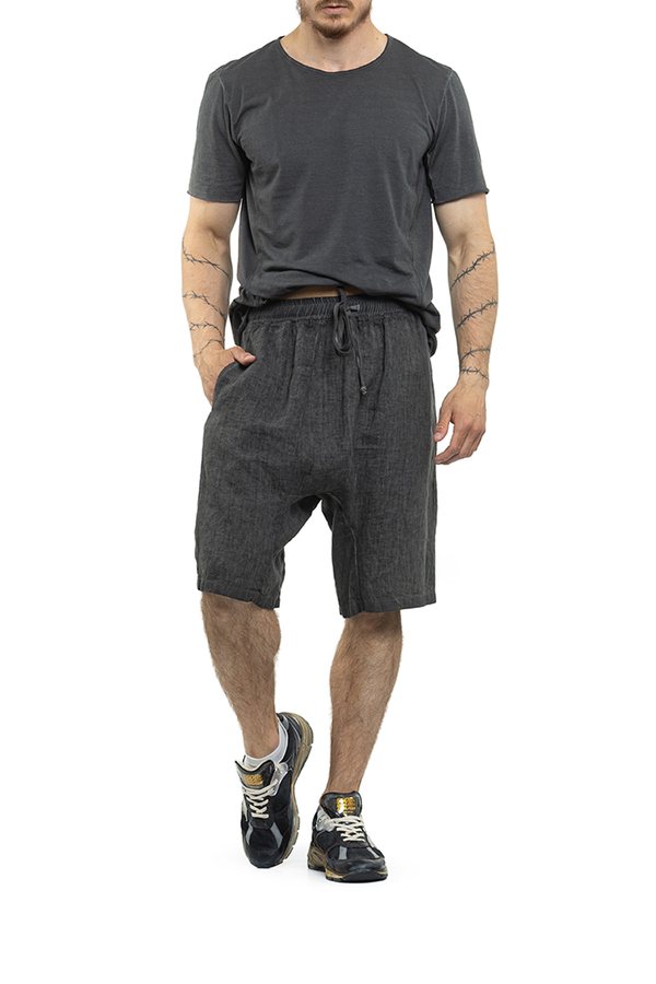 - Шорты с эластичным поясом на шнурке, двумя прорезными карманами по бокам и одним сзади.