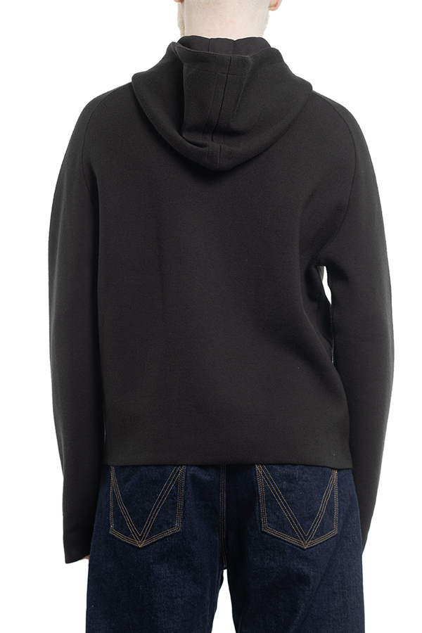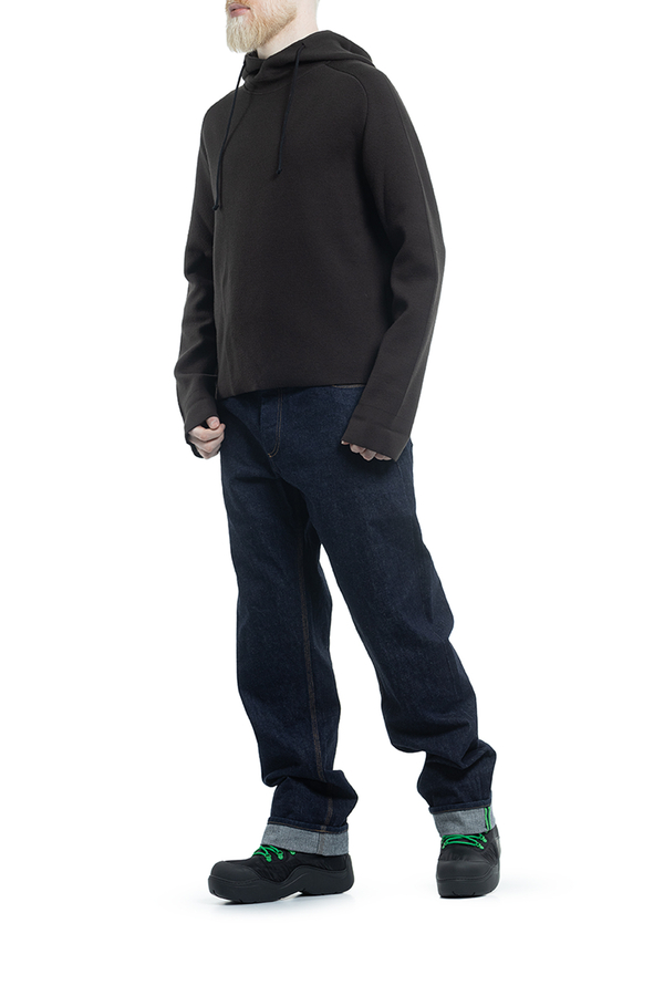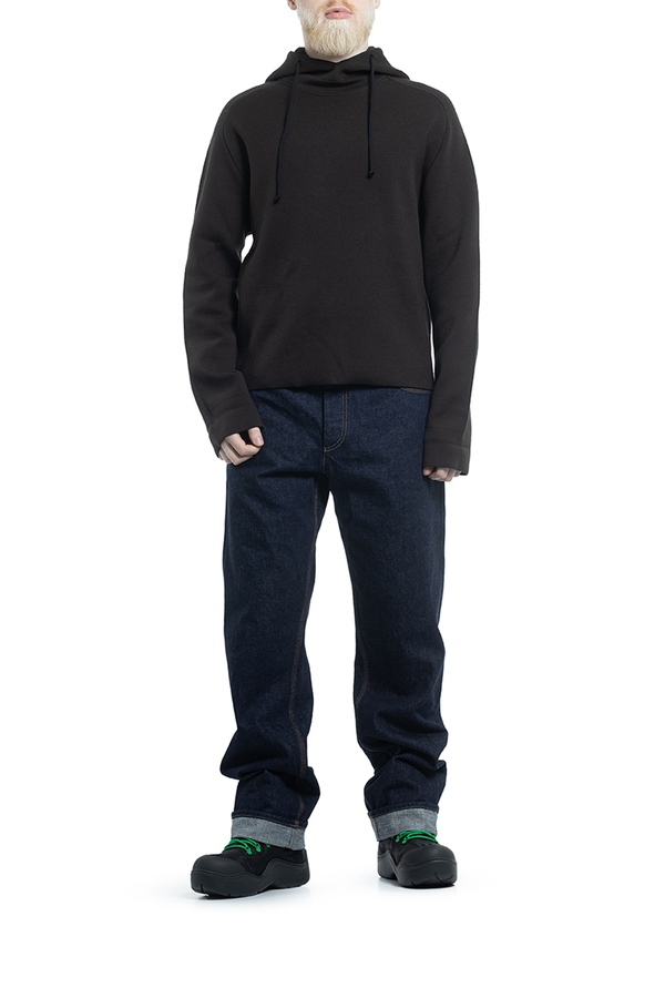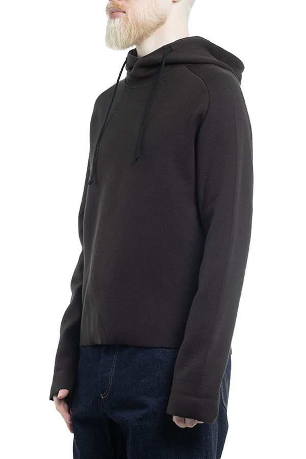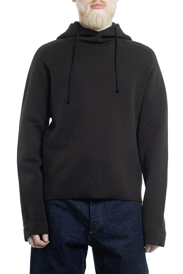 - Трикотажне худі з гладкої тканини з довгими рукавами. Капюшон на шнурці, прямий подол.