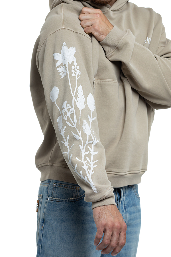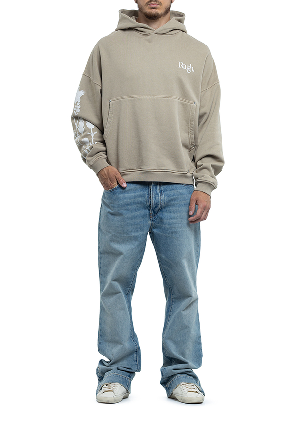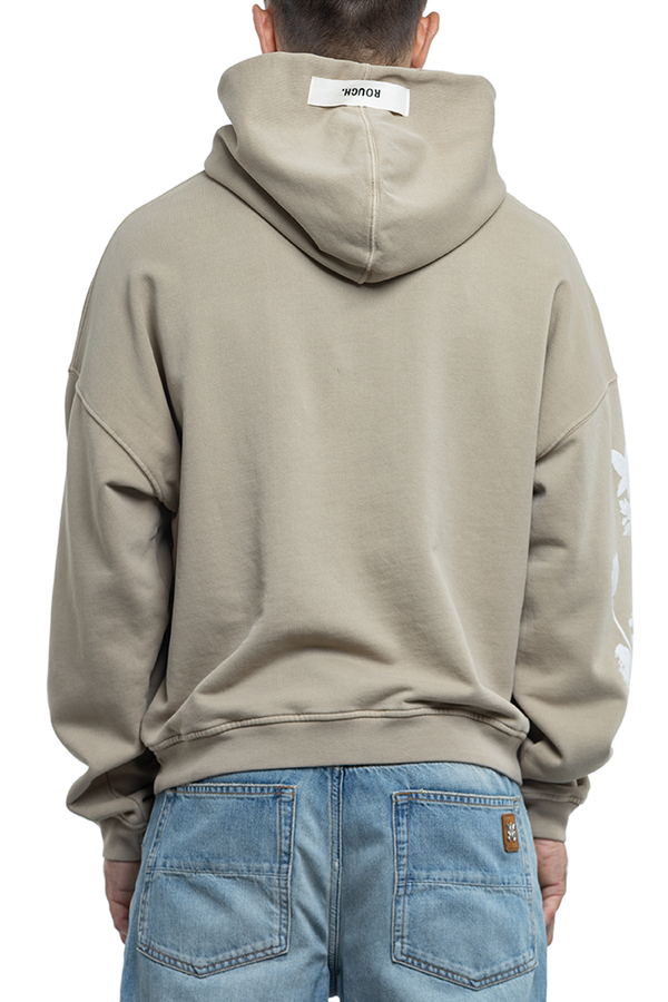 - Худи с капюшоном, длинные рукава, карман-кенгуру спереди, заниженная линия плеч, принт логотипа на груди, оригинальный цветочный принт на рукаве, нашивка с логотипом сзади