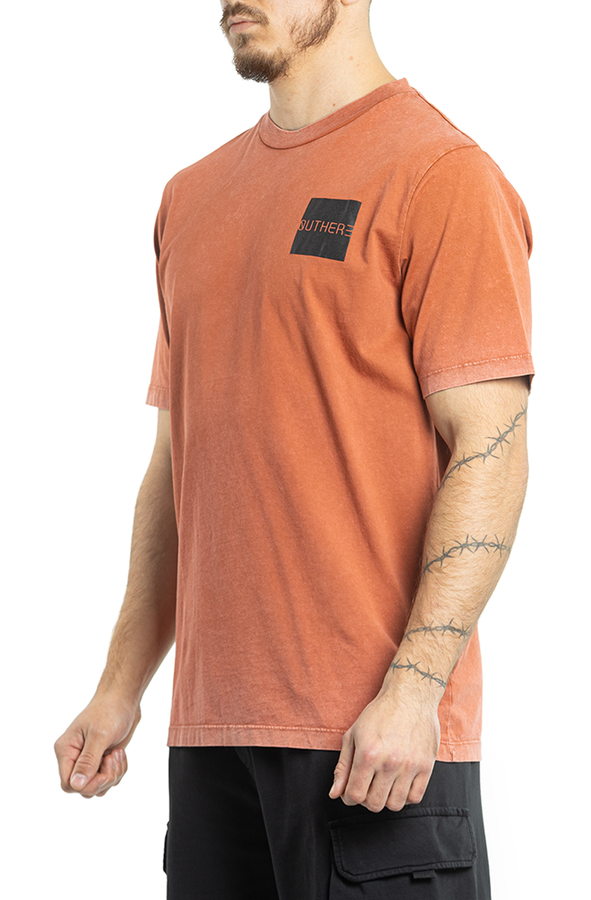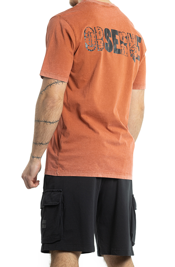 - Футболка с оригинальным принтом на спине, короткие рукава, круглый вырез горловины, принт логотипа на груди