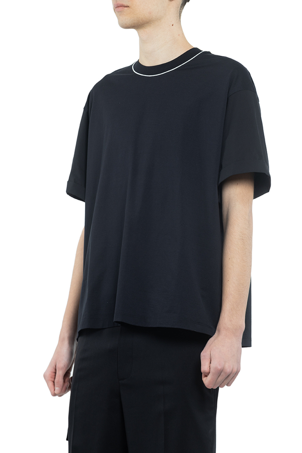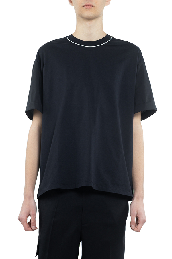 - Футболка з короткими рукавами з відворотами, круглий виріз горловини, вільний крій