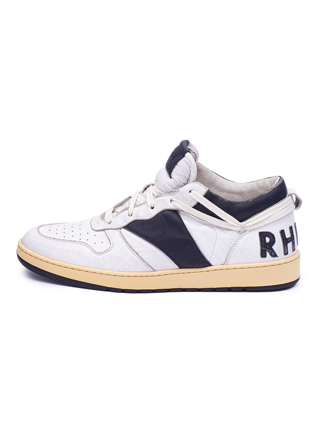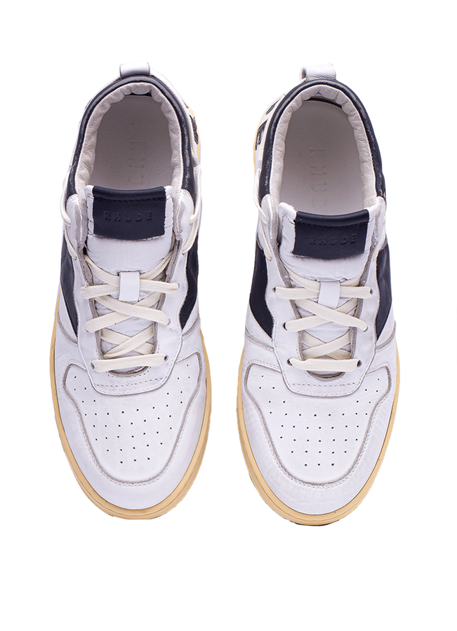 Кожаные кроссовки с логотипом сзади, застежка на шнуровке спереди, двухцветный дизайн, плоская резиновая подошва.