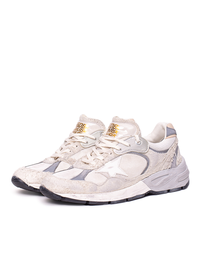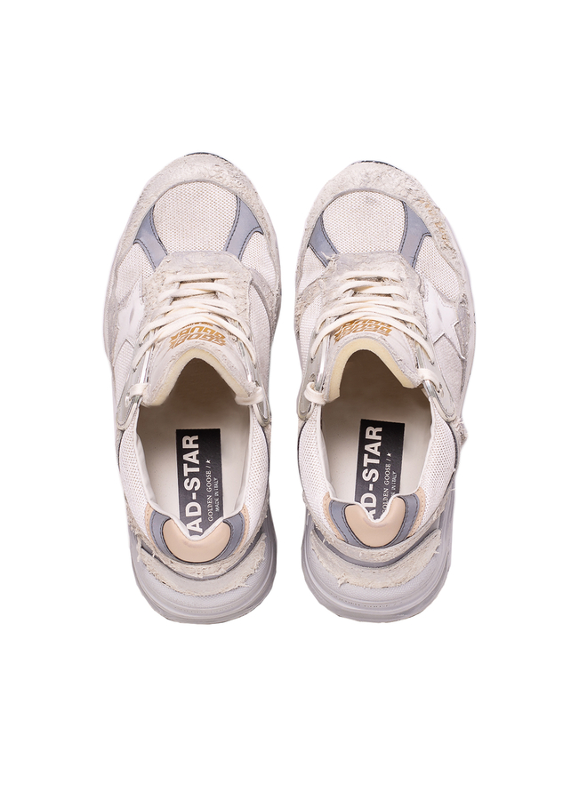 - Кроссовки из потертой замши с сетчатыми вставками, фирменными нашивками-звездами по бокам, язычком с логотипом, круглым носком, резиновой подошвой, на шнуровке