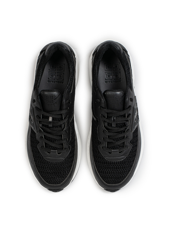 - Кроссовки с сетчатыми вставками, миндалевидный носок, спереди шнуровка, фирменная стелька, резиновая подошва, нашивка 4G сбоку, тисненый логотип на язычке и сзади