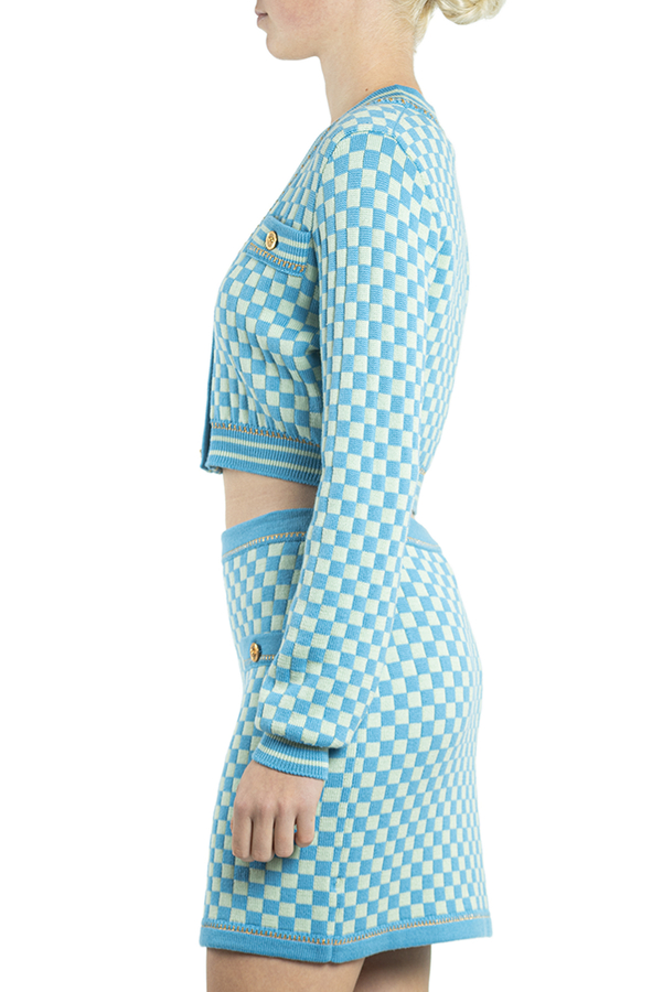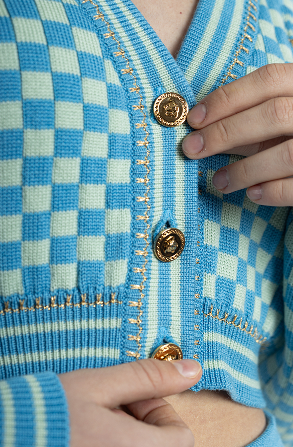 - Короткий кардиган із логотипом. Застібка на гудзики з тисненим логотипом. V-подібний виріз, довгі рукави та дві нагрудні кишені з клапаном. Модель вузького крою.