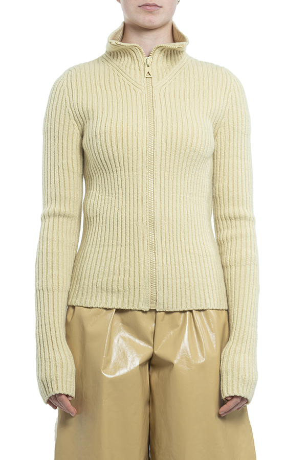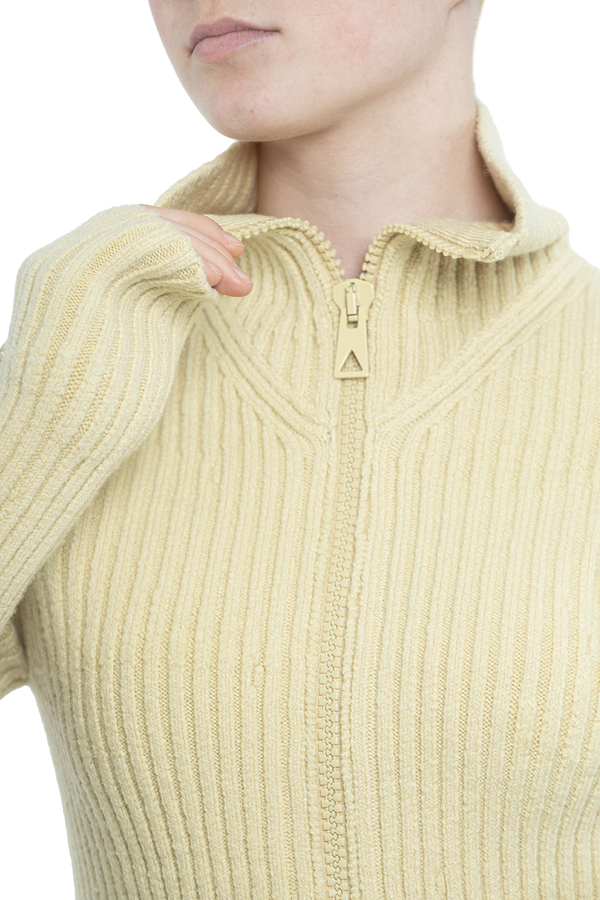 - Вовняна кофта на блискавці, з довгим рукавом. Розкинутий комір. Укорочений поділ. Розширені рукави.