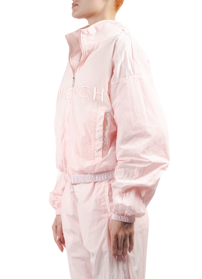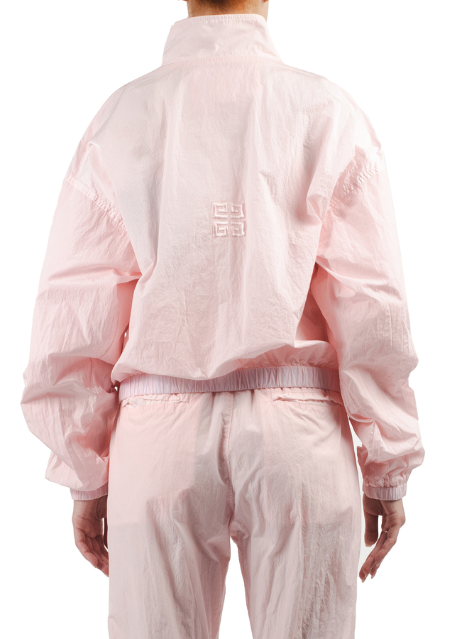 - Спортивна кофта з високим коміром, застібка на блискавці спереду, довгі рукава, еластичні манжети, дві прорізні кишені з боків і еластичний поділ.