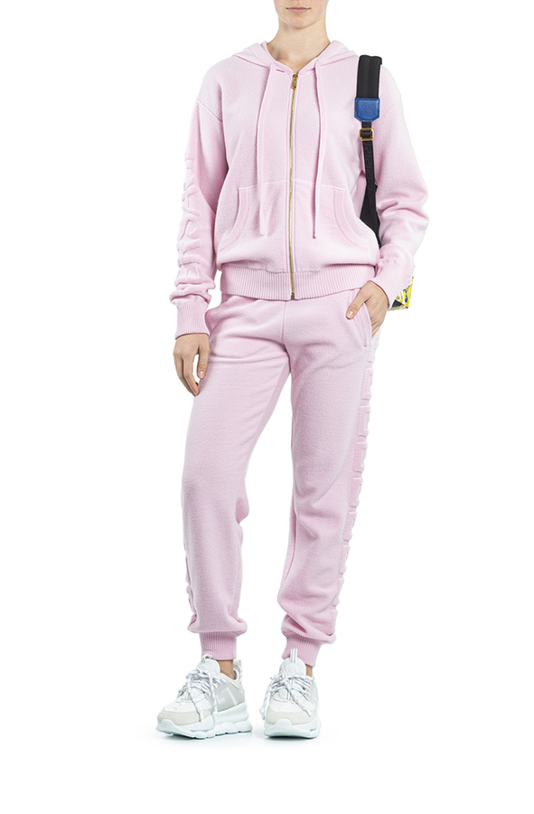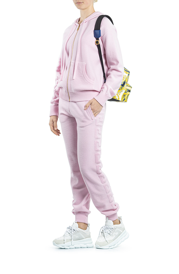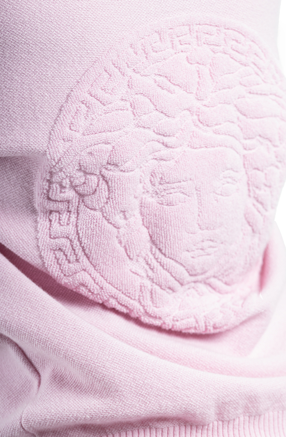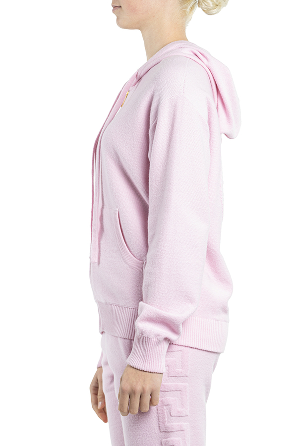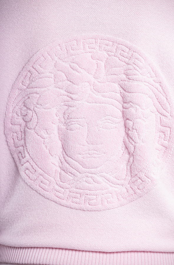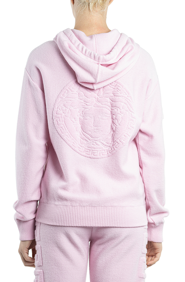 - Спортивна куртка з аплікацією Medusa на спині. Капюшон, що затягується на шнурок , приспущені плечі, застібка на блискавці спереду, довгі рукави і дві передні кишені.