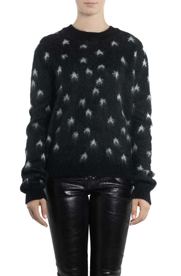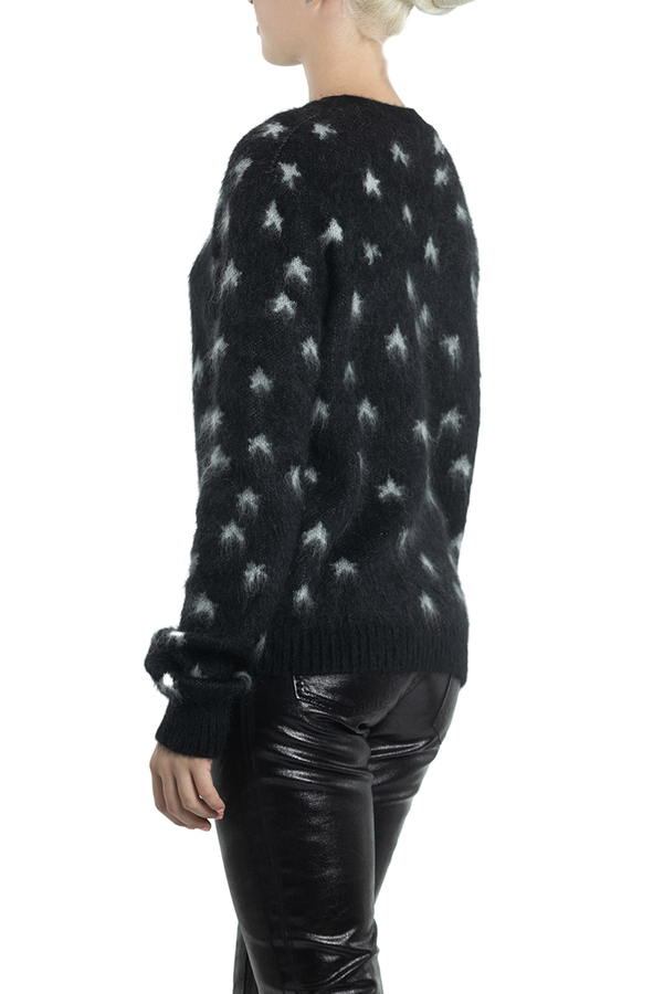 - Мохеровий светр з патерном зірок по всій поверхні. З довгими рукавами, круглим вирізом горла.