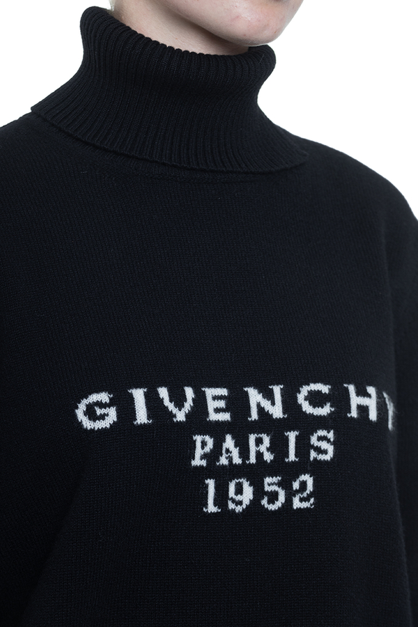 - Свитер с длинными рукавами, воротник стойка, жаккардовая надпись GIVENCHY на груди, ребристый воротник, нижний край и манжеты