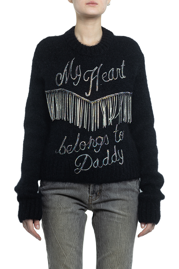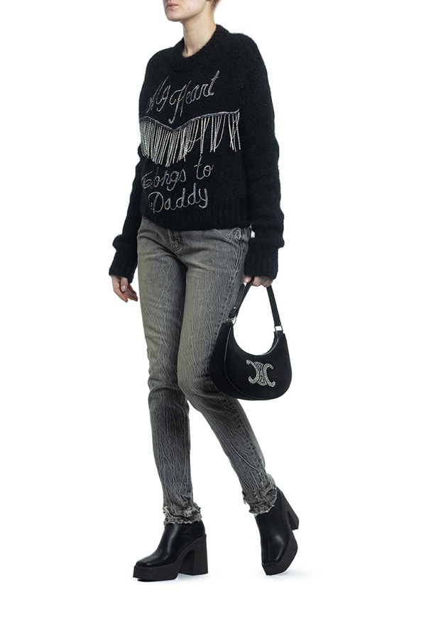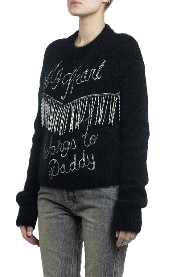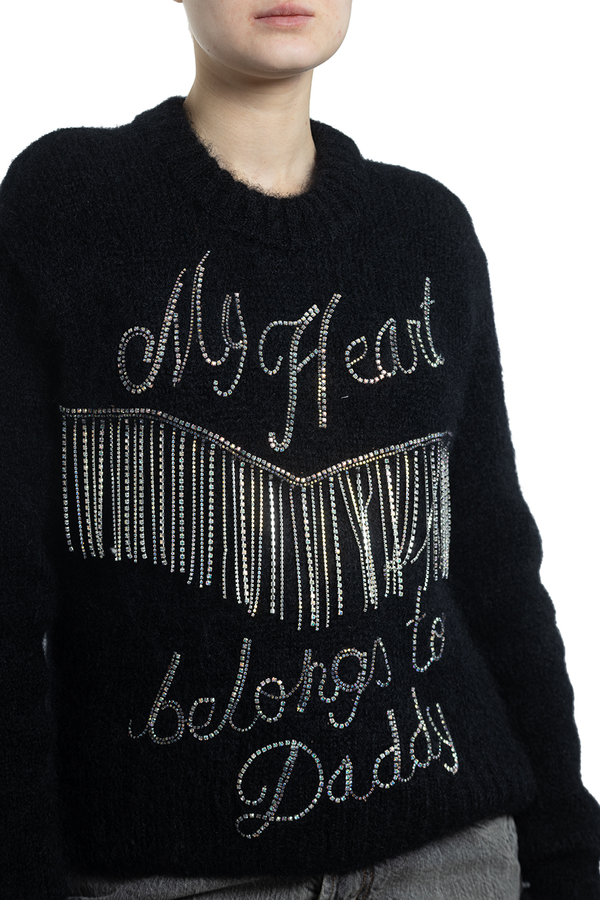 - Мохеровий светр з написом спереду. Прикрашений кольоровим камінням.